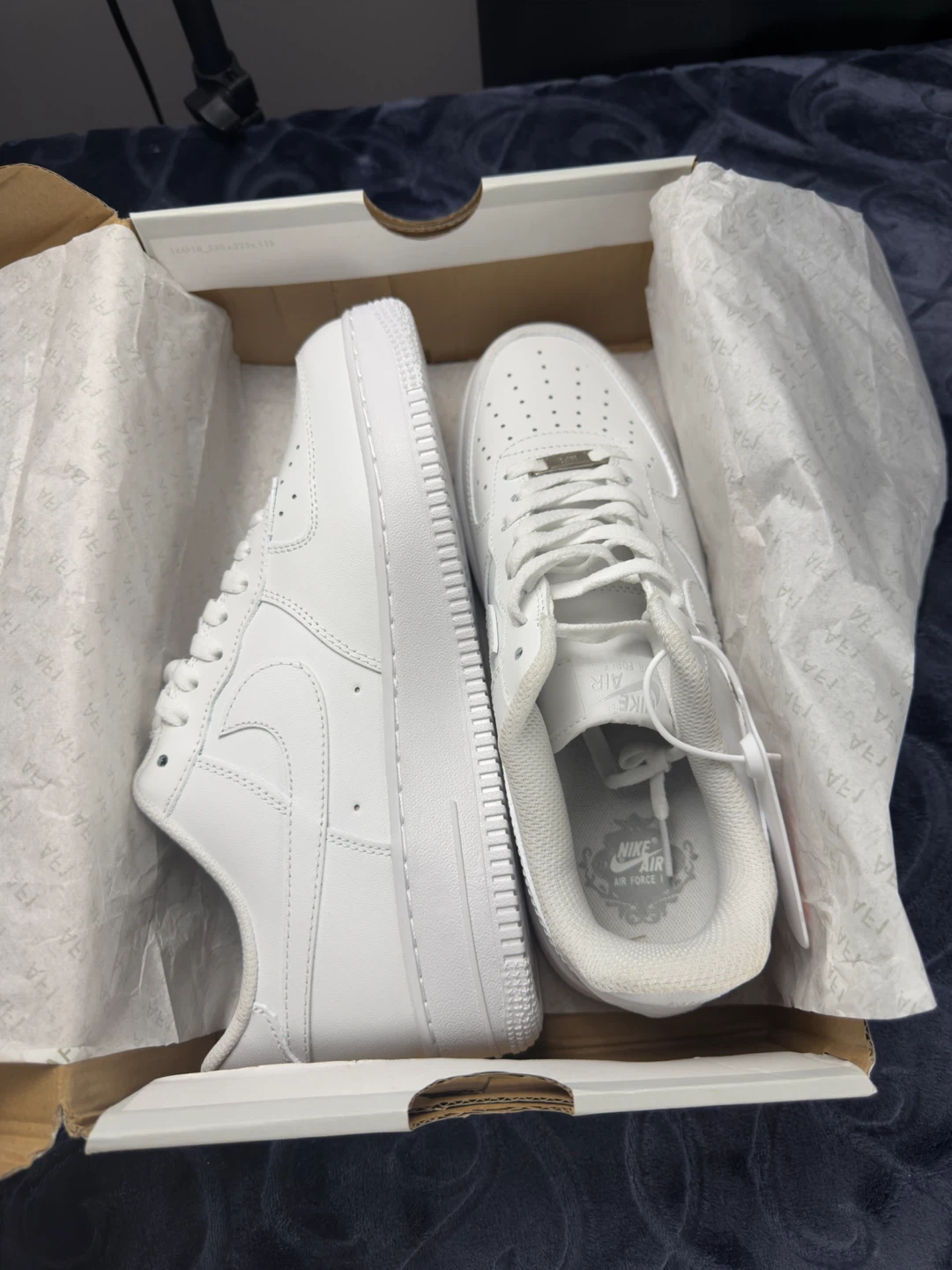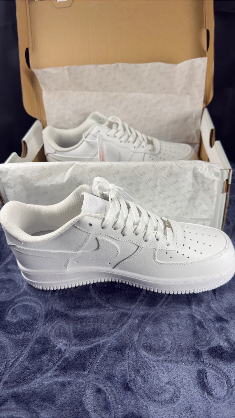 Selling a brand new pair of Nike Air Force 1 '07 in all white! They are in the original box and haven't been worn. Size is US 8.5
