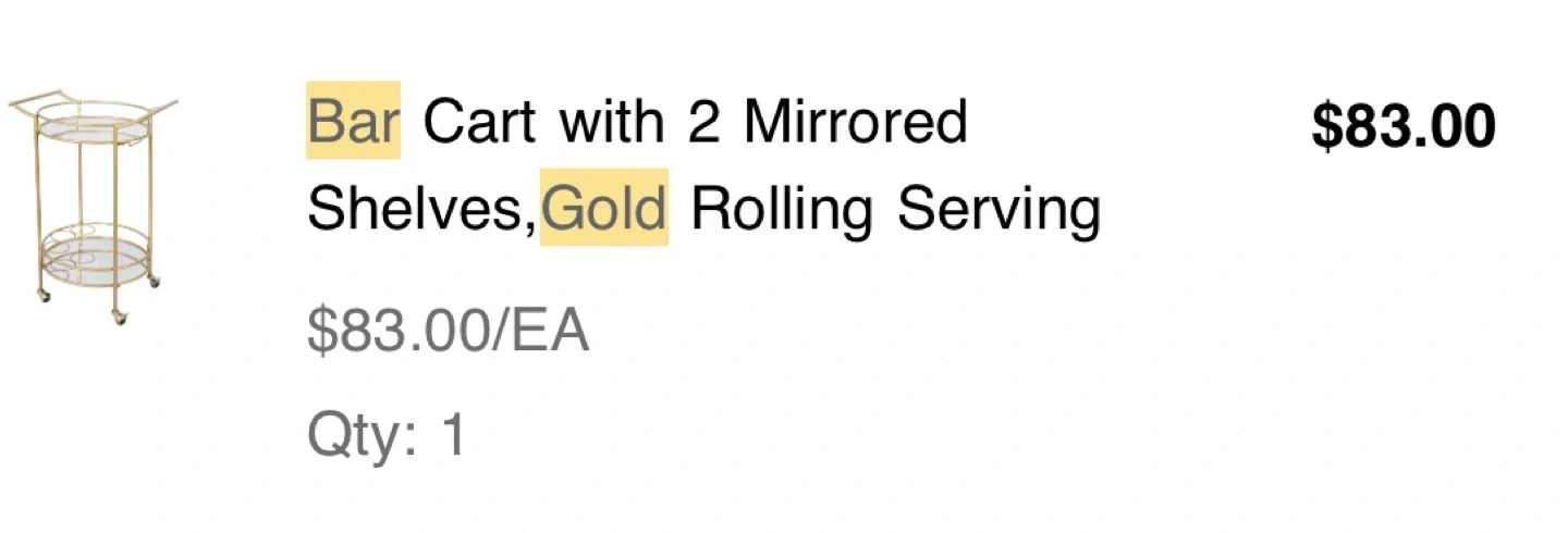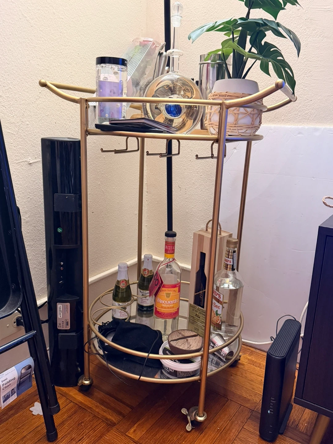 Selling a stylish gold bar cart with two mirrored shelves! It's a rolling serving cart, perfect for entertaining or adding a touch of elegance to your space. Originally bought for $83