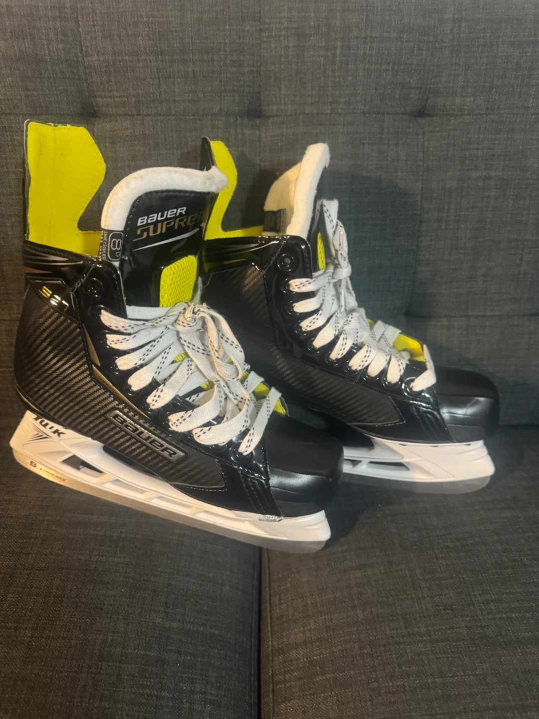 Selling a pair of Bauer Supreme hockey skates. They are in good condition and ready for the ice! Perfect for anyone looking for reliable and high-performance skates
