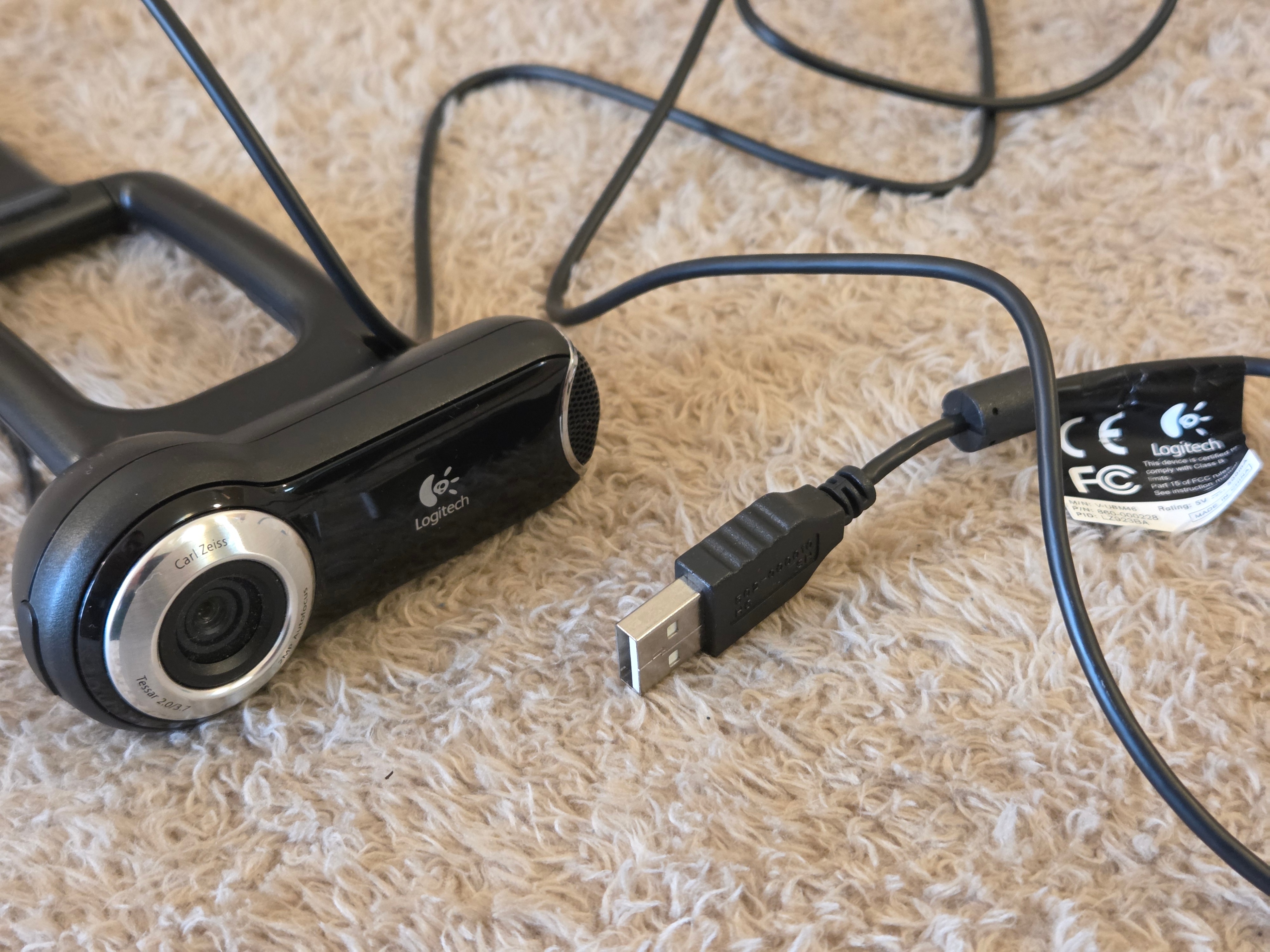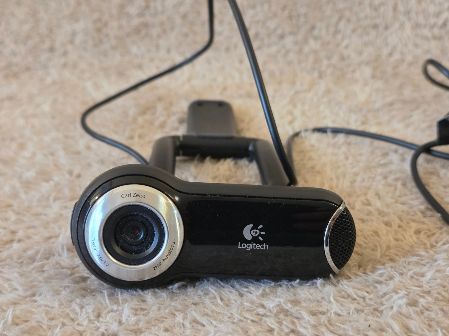 Classic Logitech QuickCam Pro 9000 USB webcam with Carl Zeiss Tessar glass lens and true autofocus. Delivers crisp 720p HD video with Logitech RightLight low-light correction and a built-in mic for clear voice on Zoom, Teams, Google Meet and Skype.