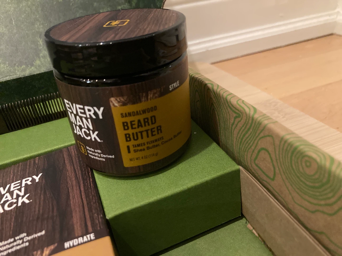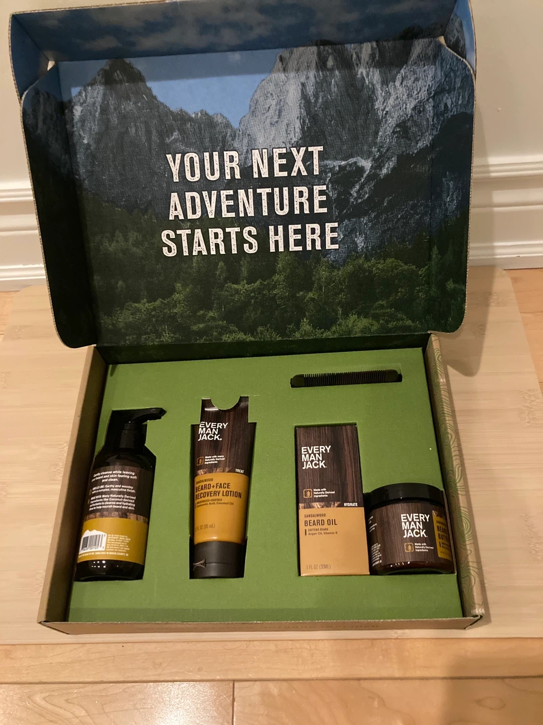 Selling an Every Man Jack Sandalwood Beard Kit! The kit includes beard + face wash, beard + face recovery lotion, beard oil, and beard butter. It also comes with a comb and the original box. All products are made with naturally derived ingredients.