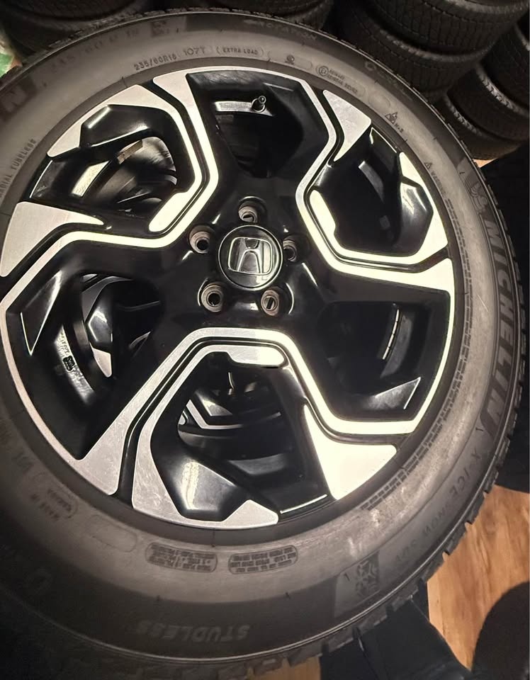 Like you used only a couple of days Michelin X ice no SUV tires with original OEM Honda CRV touring black rims bolt pattern 5X114.3. Pick up Scarborough room for proper negotiation