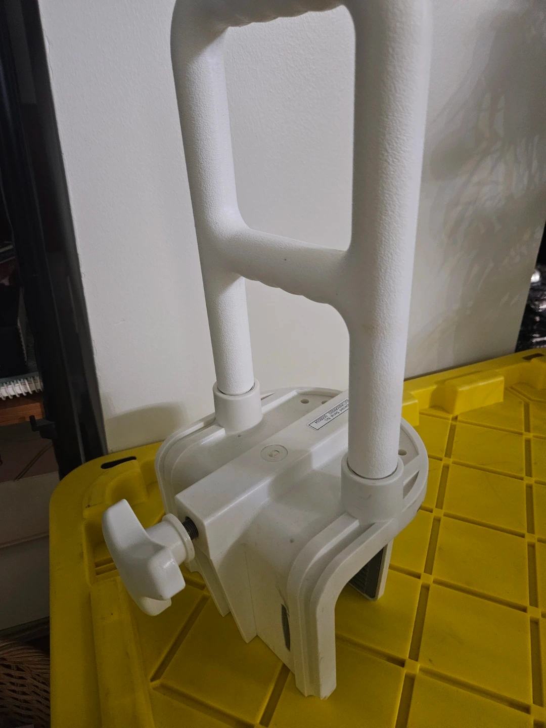 Heavy duty, adjustable bathtub grab bar in great condition! It's white and will help make getting in and out of the tub safer and easier