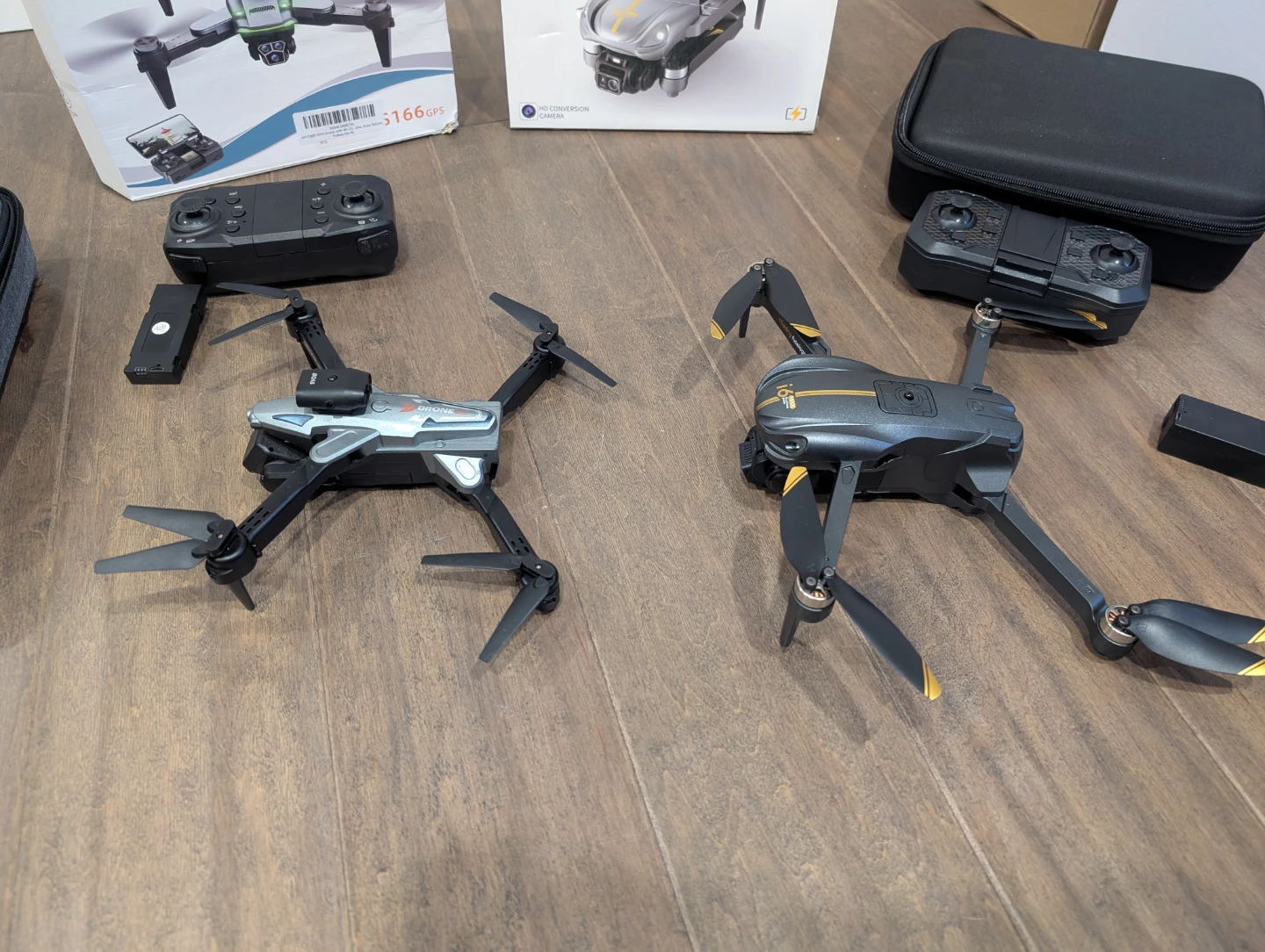 Brand new wifi foldable drone with 4K camera for sale. Brushless motor, 4K, HD FPV drone, foldable, quadcopter, GPS location tracking, video, photo, headless mode, one click return, 2 batteries, case, $65 FIRM each.