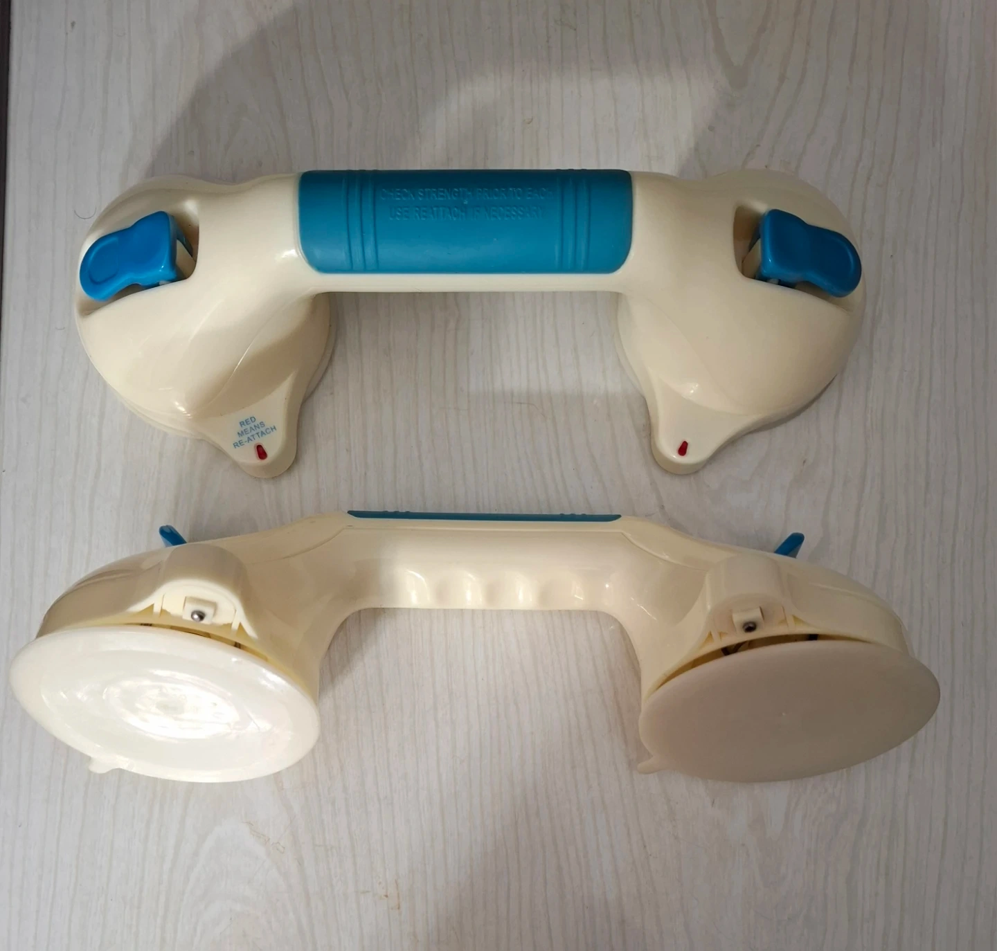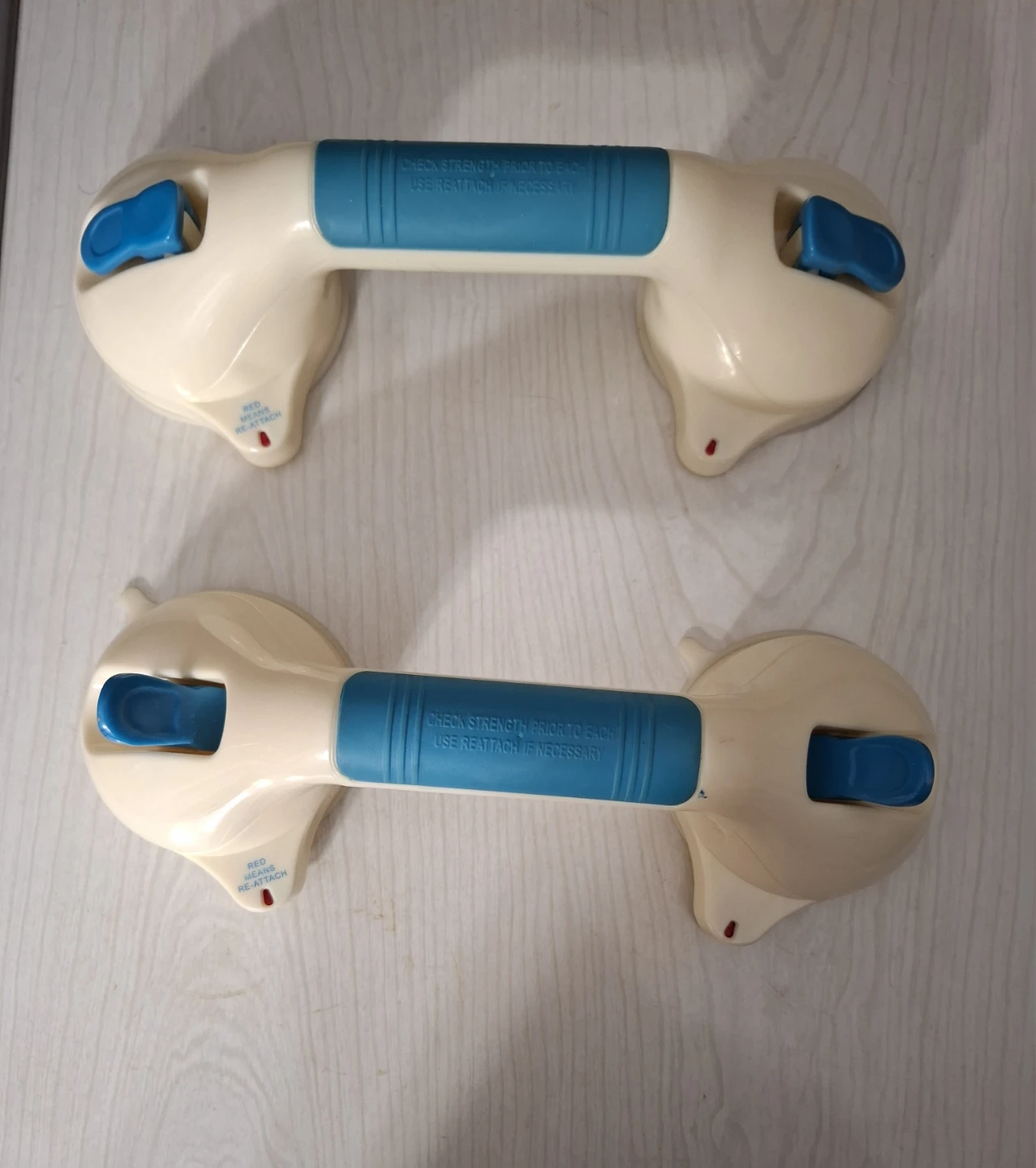 Selling two suction grab bars for extra safety in the bathroom! They're great for providing a little extra support when getting in and out of the shower or tub. They attach easily to smooth, non-porous surfaces with strong suction cups. Perfect for anyone needing a bit of extra help or stability!