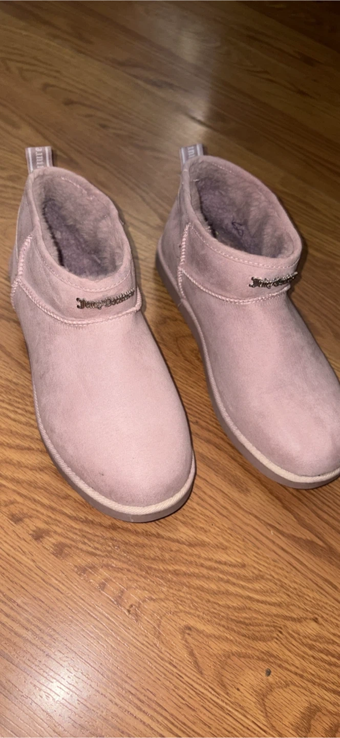 These cute Juicy Couture ankle boots are in great condition and ready for a new home! They're a lovely shade of pink and feature the Juicy Couture logo. Perfect for adding a touch of style to your everyday look!