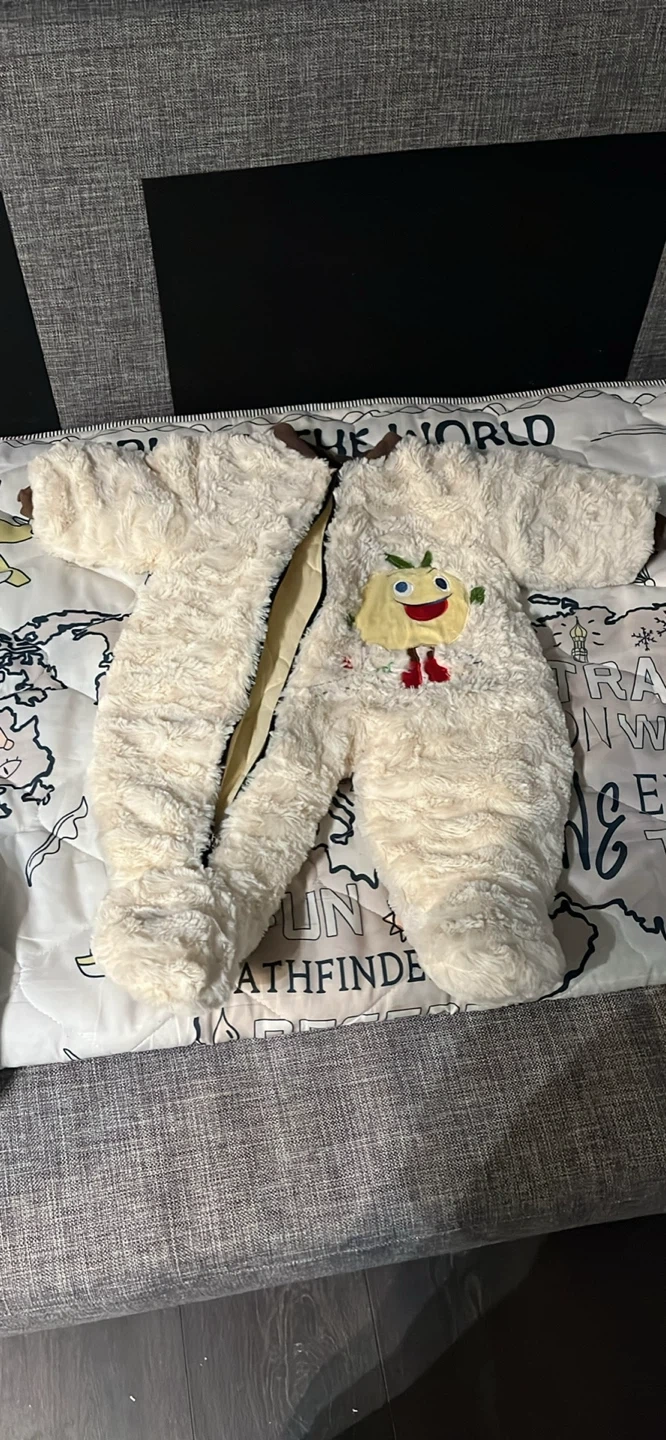 A cozy and warm baby snowsuit, perfect for keeping your little one snug during the colder months! It features a cute lemon design that adds a touch of fun