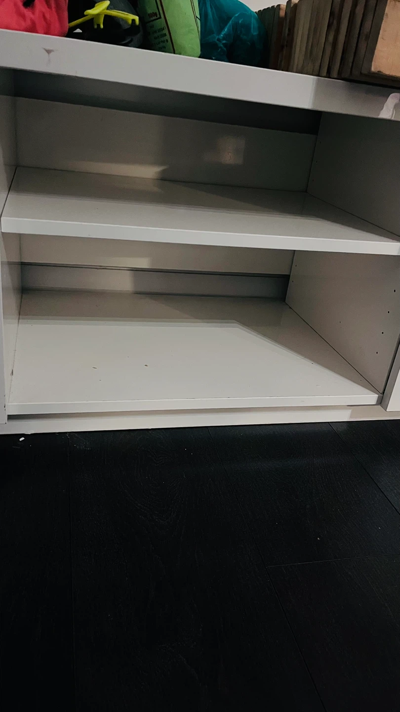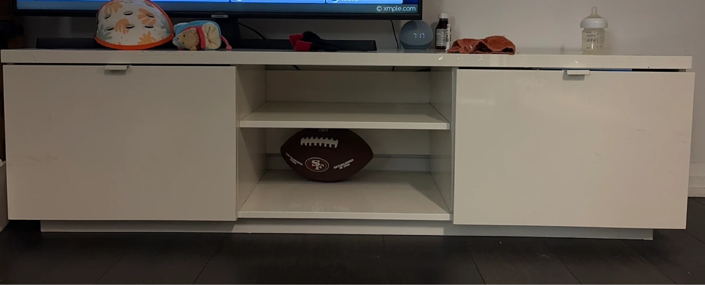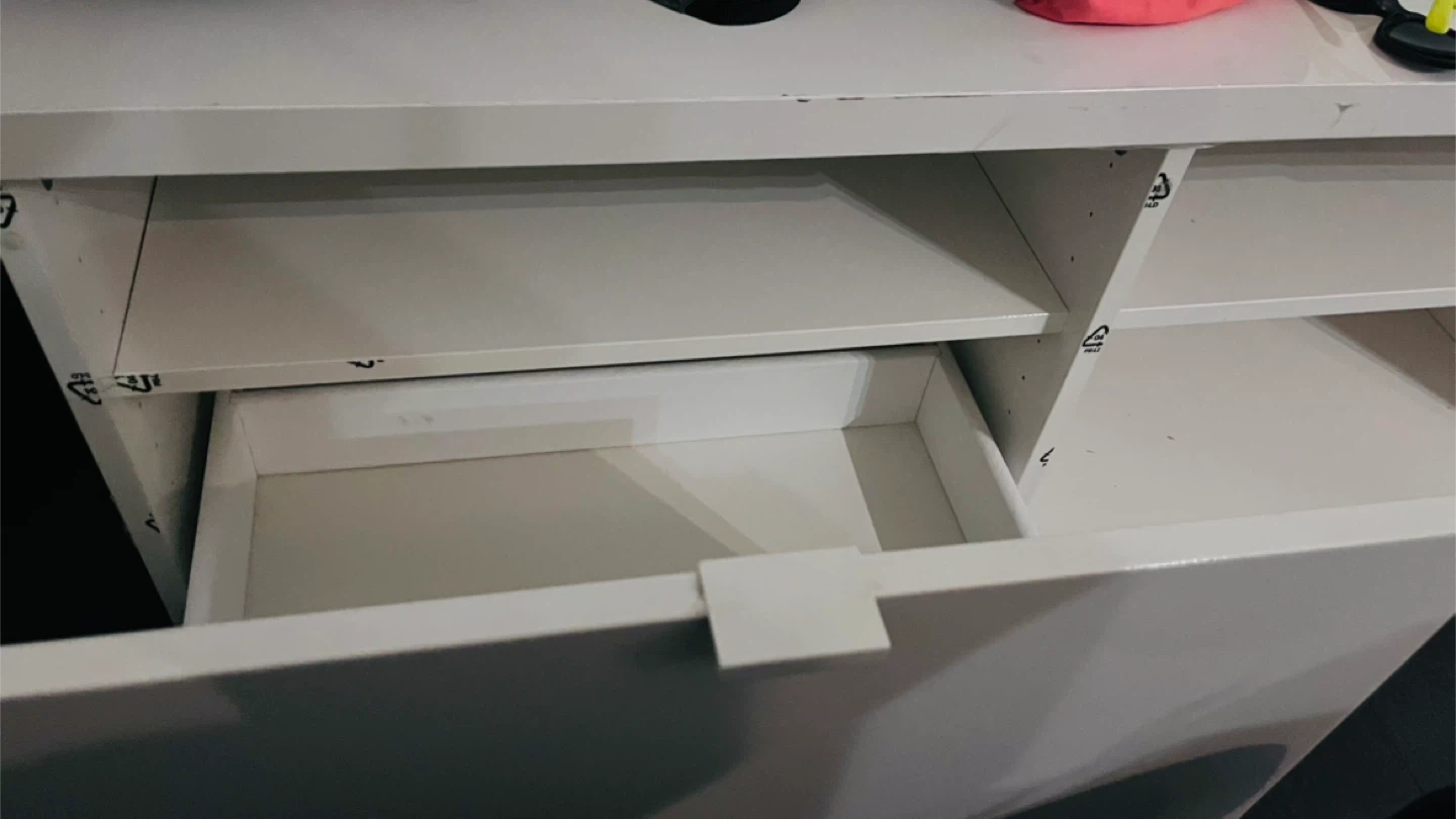 Selling a white media unit with drawers. There are some signs of use.