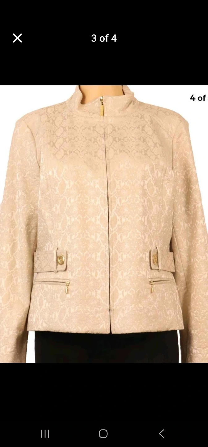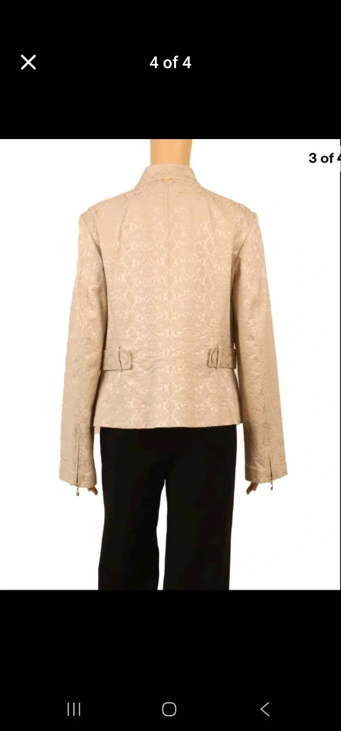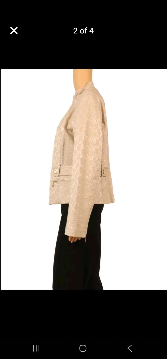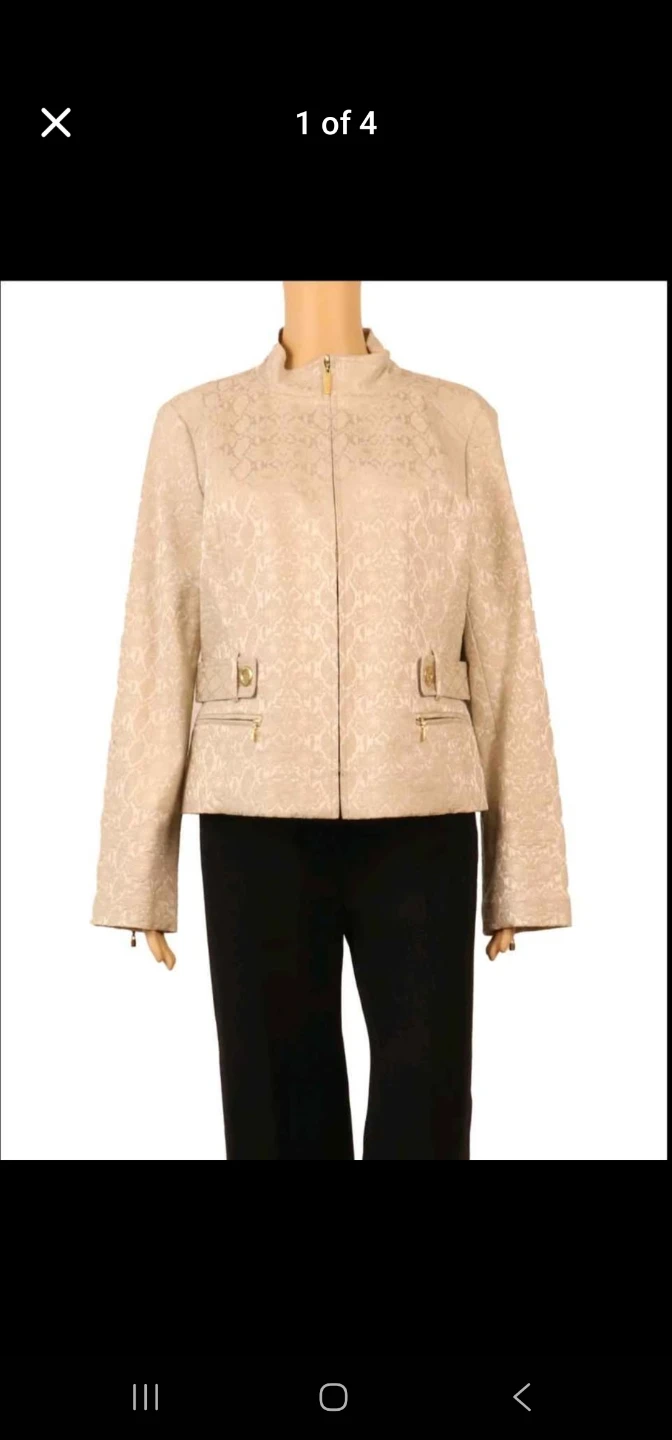 Beutiful size 10. brand new with tags. It didnt fit me and I cant return it now as bought it online. It is a gorgeous jscket my loss is your gain. The original price is $985 canadian.