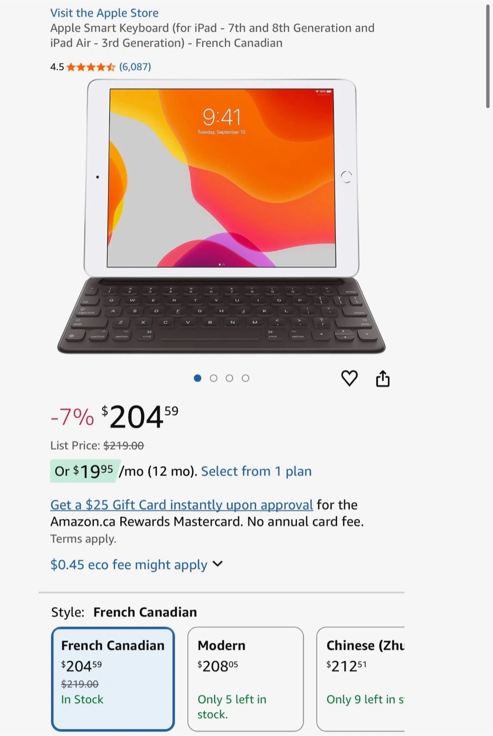 Selling an Apple iPad Smart Keyboard. It comes with the original box. This keyboard is compatible with iPad (7th, 8th, and 9th generation), iPad Air (3rd generation), and iPad Pro (10.5-inch). Retails for $204.59