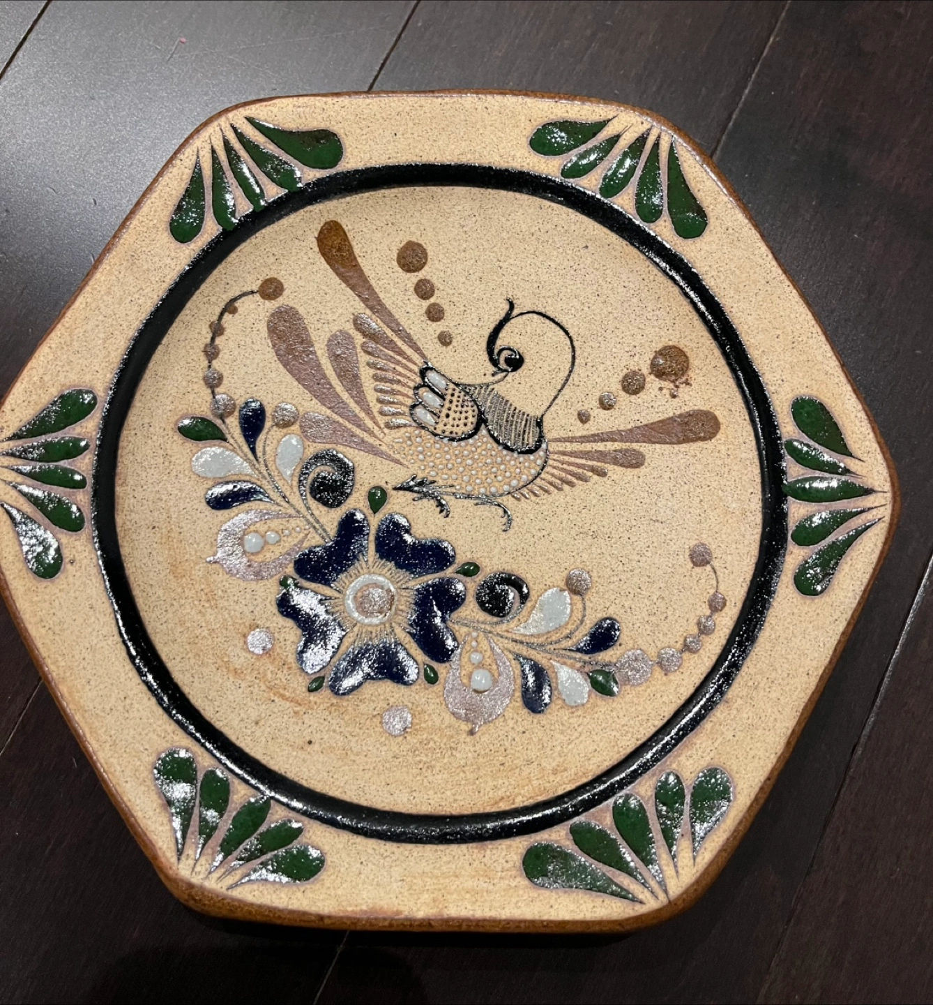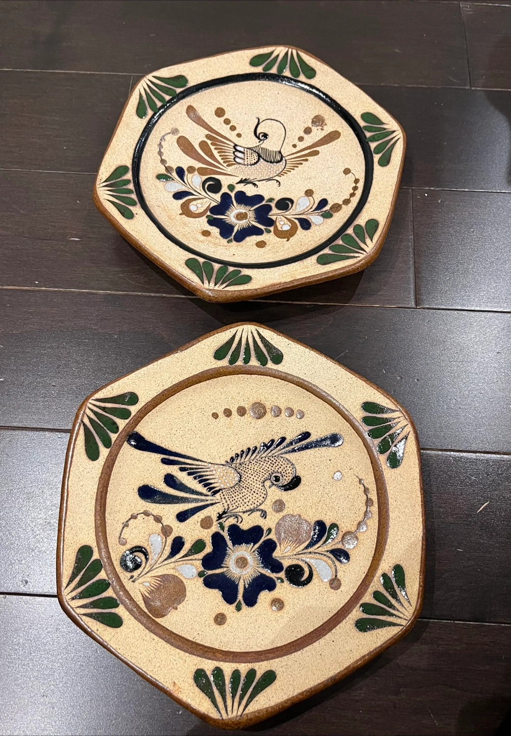 Selling a set of two handmade decorative plates! They feature unique bird and floral designs. The plates have a rustic, handcrafted feel with a beautiful colour palette. Perfect for adding a touch of charm to your home decor!