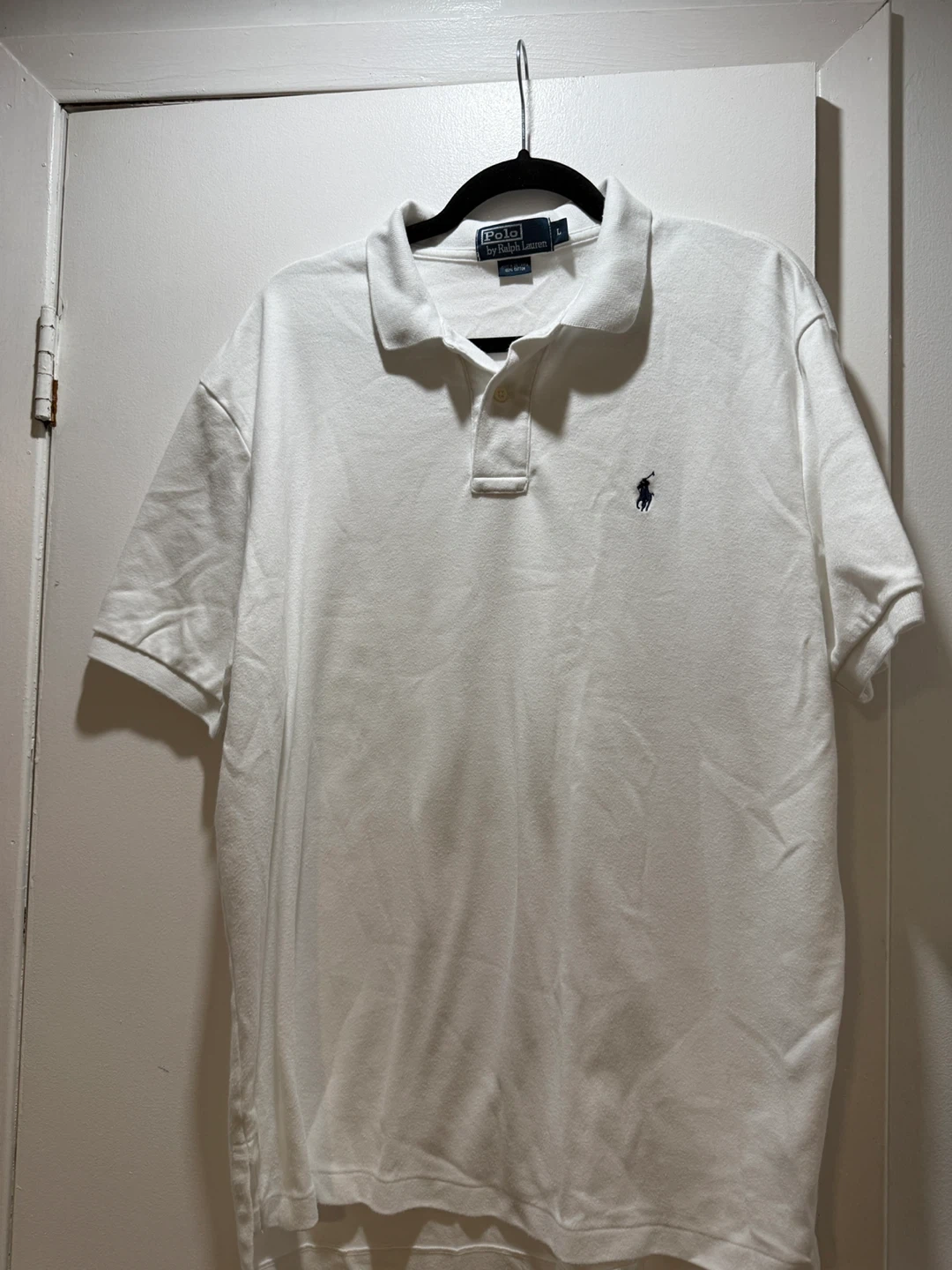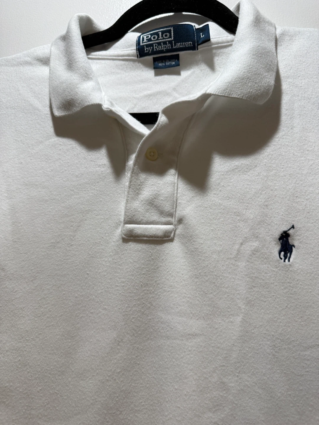 Selling a classic white Polo Ralph Lauren polo shirt in size L. It's made of 100% cotton and features the signature Polo logo. A great addition to any wardrobe!