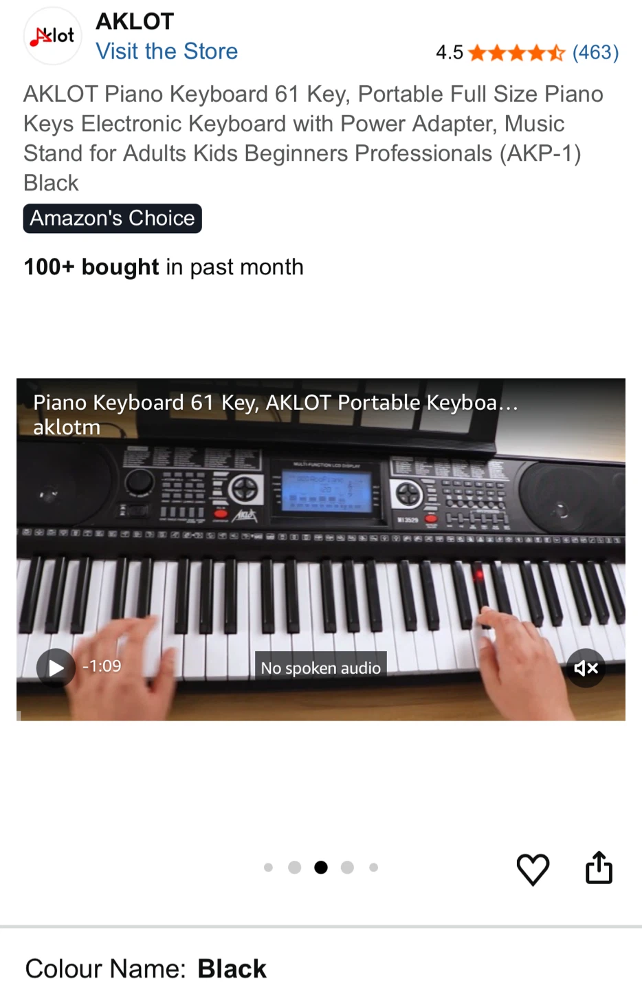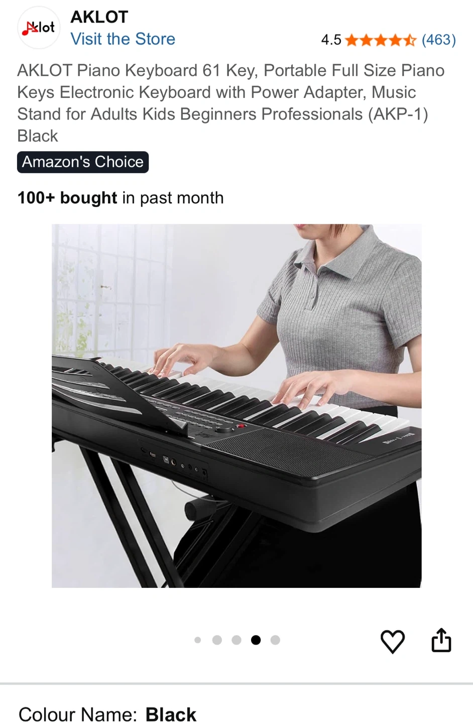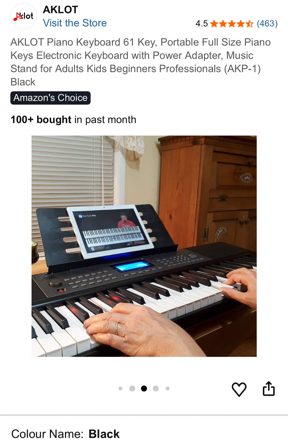 Selling an AKLOT 61-key portable piano keyboard in black. It features a full-size piano keys electronic keyboard with a power adapter and music stand. Great for adults, kids, beginners, and professionals! It has 300 tones/rhythm and 40 demo songs