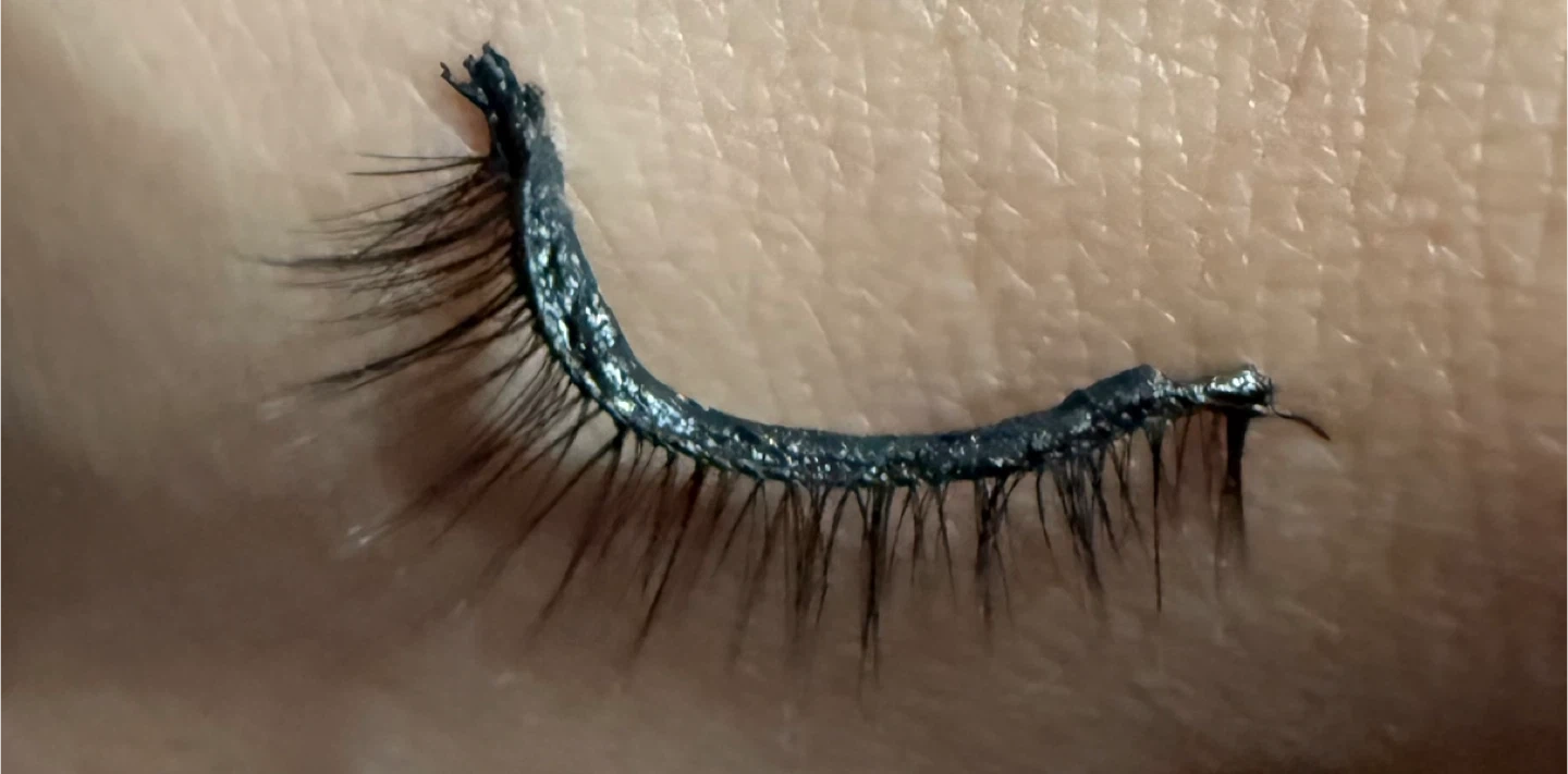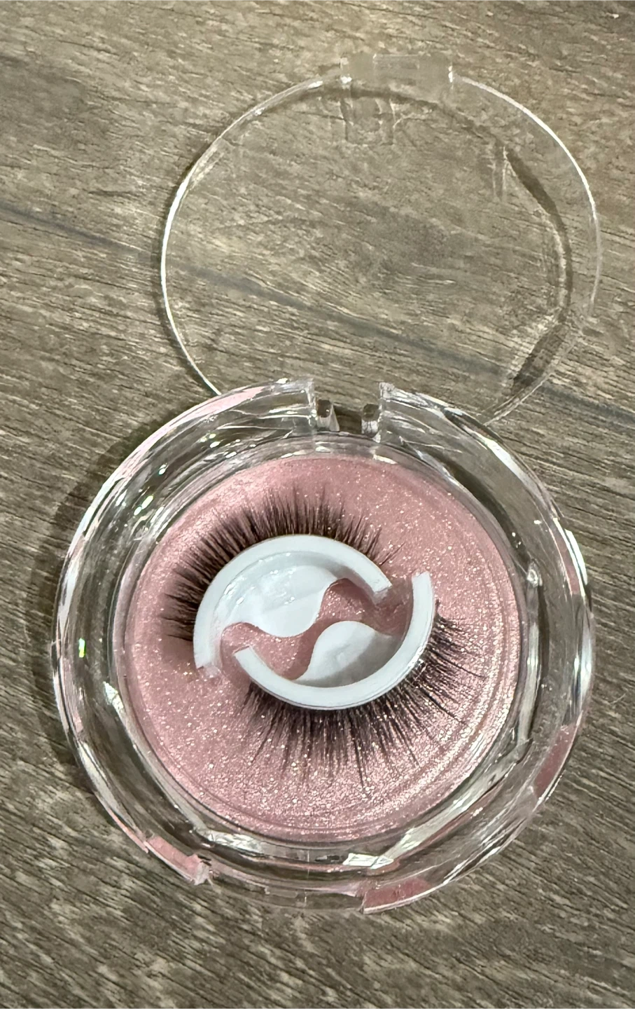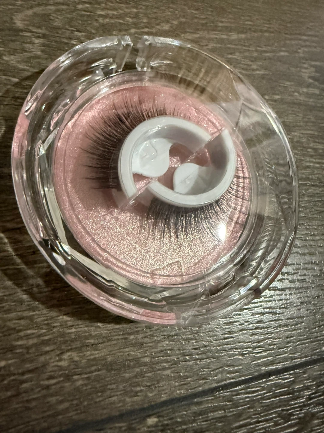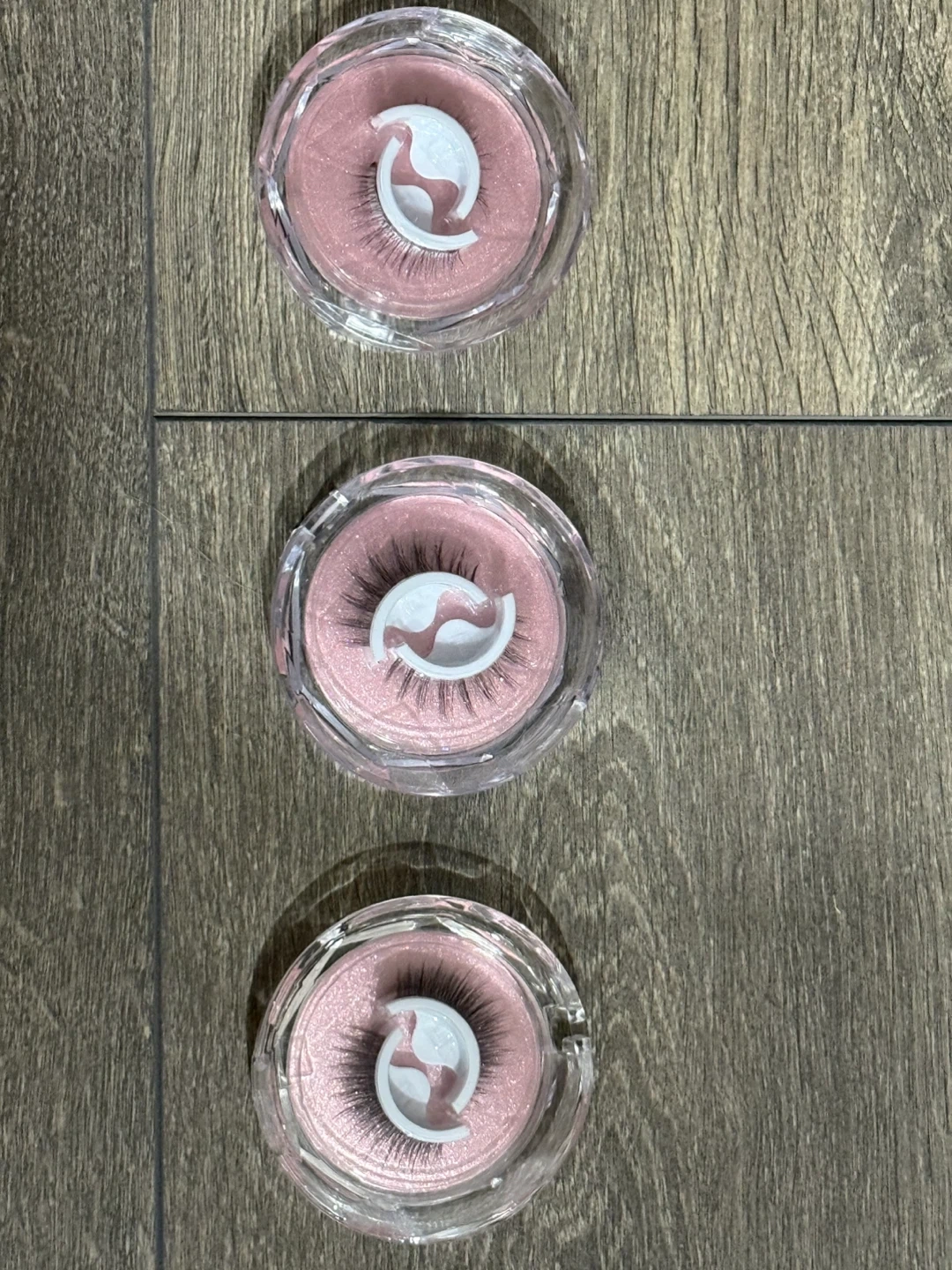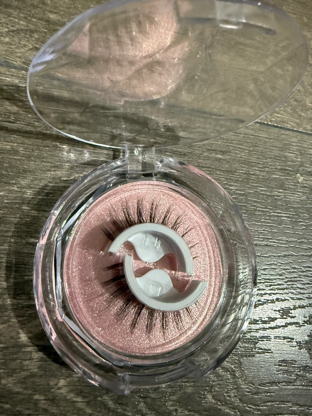 No glue needed, it sticks on easily false eyelashes! They appear to be in good condition and come in a lovely , round container.