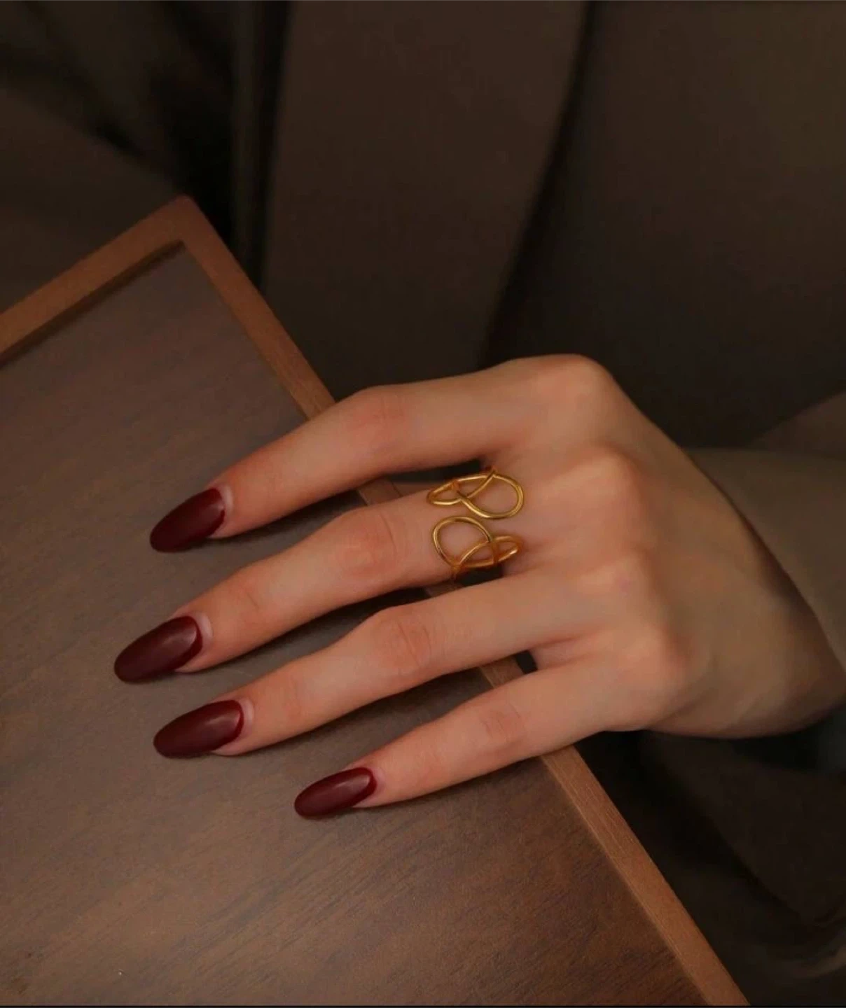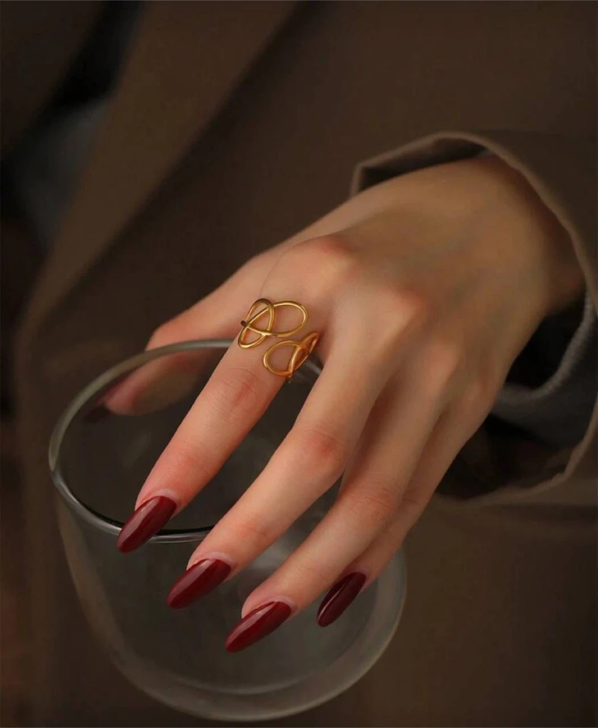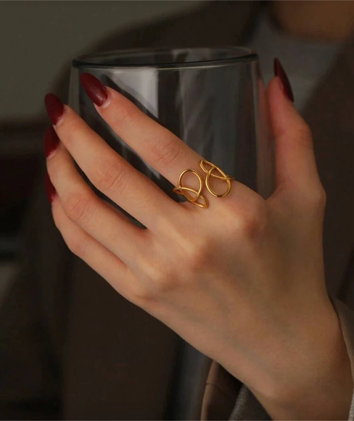 ✅ Minimalist gold-tone ring with a modern abstract openwork design