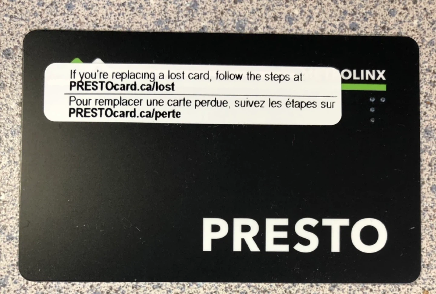 Selling a Presto card, perfect for getting around for public transit in the Great Toronto and Hamilton area. Purchased from my visitors, had extra one. Original price was $4. I sell it for $3. Pickup from Christie station during the week days between 4:30pm and 8:00pm