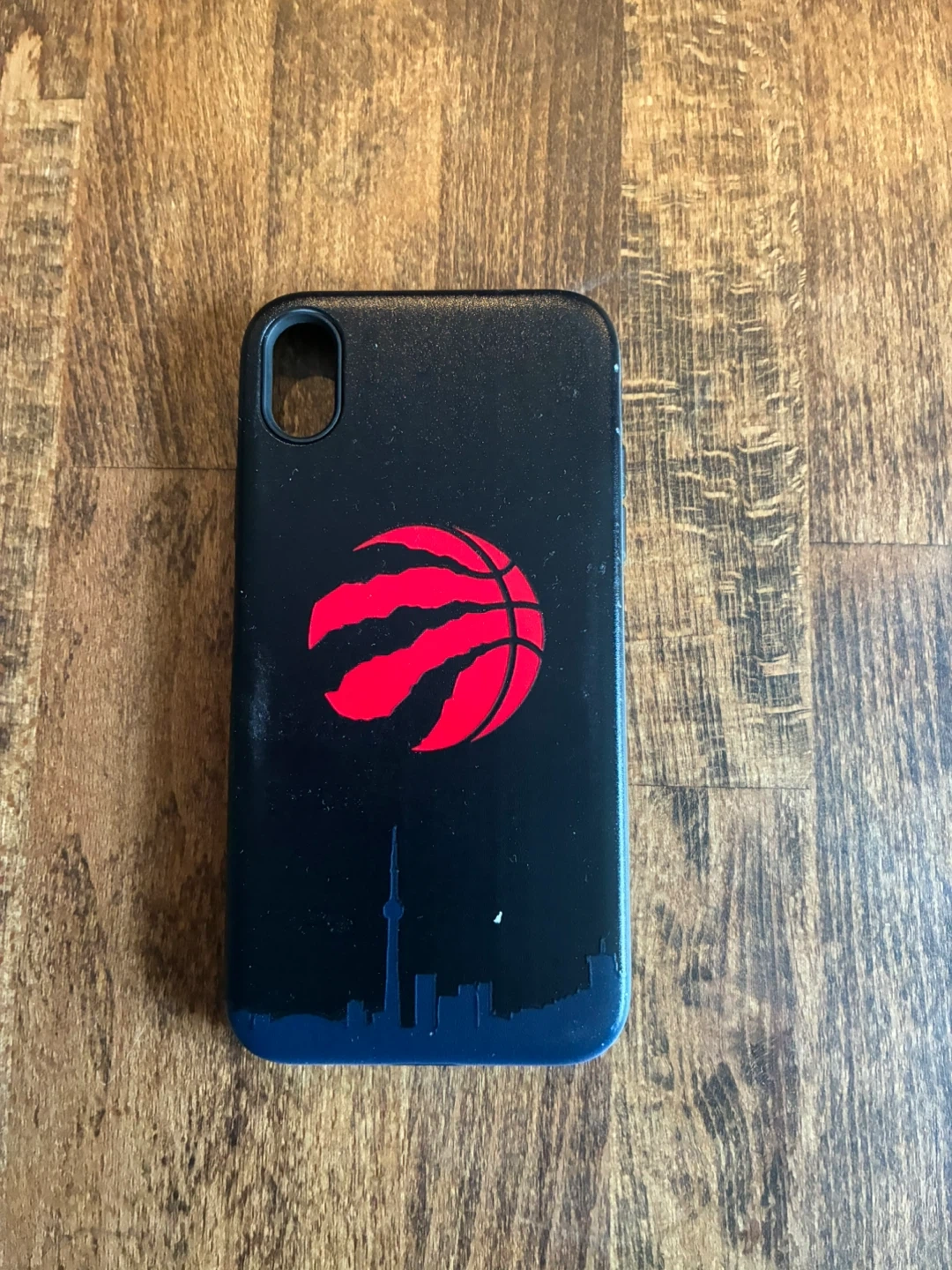 Selling a used iPhone case featuring the Toronto Raptors logo and a silhouette of the Toronto skyline. It's in good condition and ready for a new owner!
