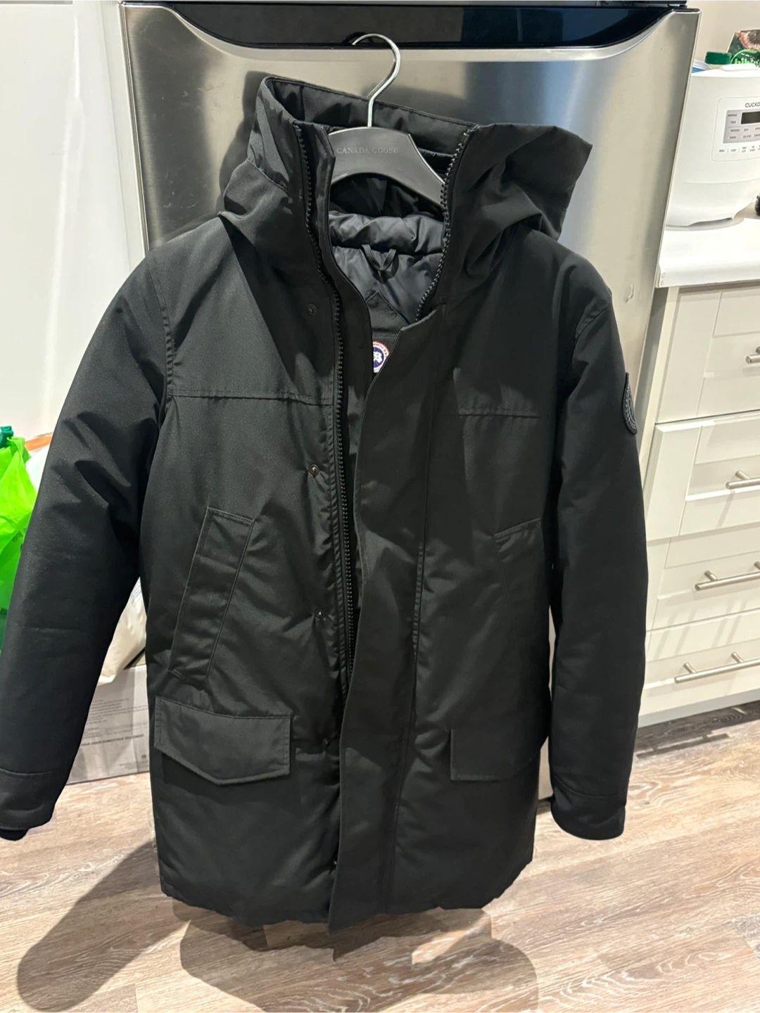 Selling a Canada Goose langford parka in black, black label, size small. Runs but bigger so small-medium