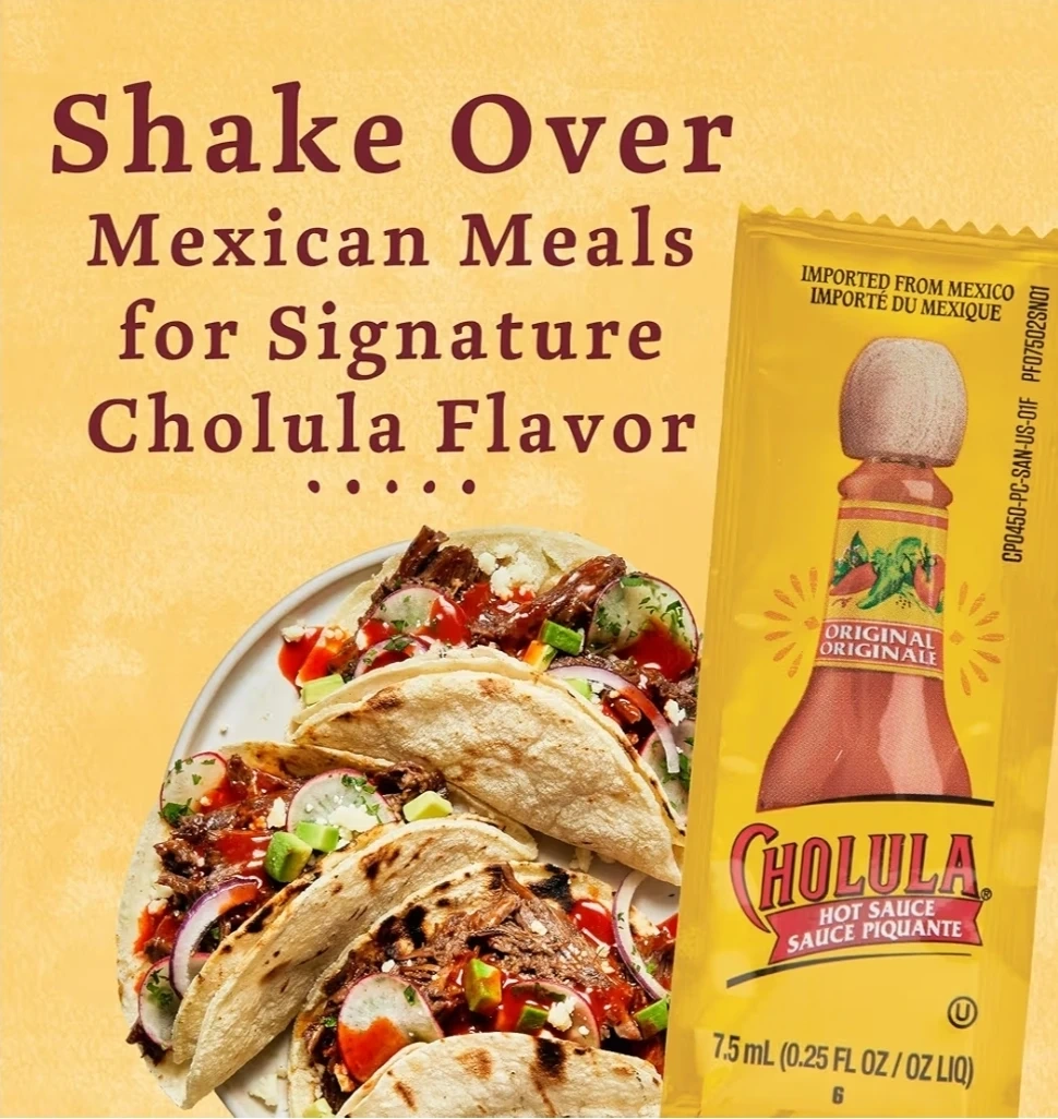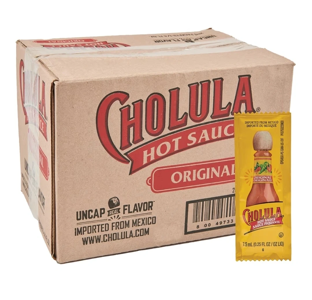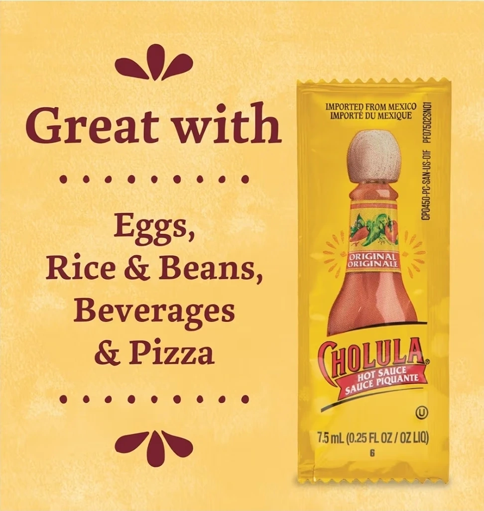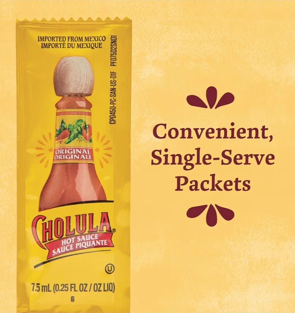 Vinegar-based sauces like Cholula typically remain safe and usable well beyond the date if sealed. These are factory-sealed single-serve packets