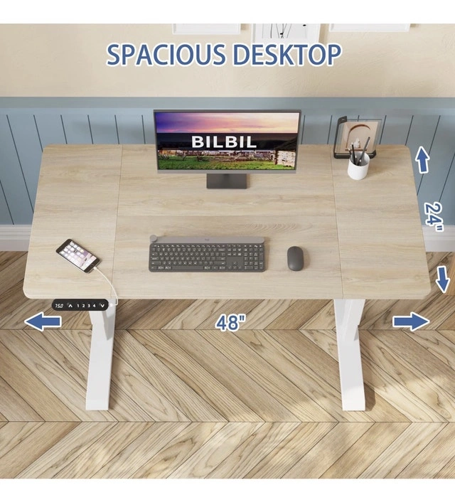 I'm selling a brand new height-adjustable electric standing desk, with a surface of 48 x 24 inches. It's perfect for transitioning between sitting and standing throughout your workday. This desk offers a smooth and quiet adjustment as you modify the height to your preference, enhancing both comfort and productivity.