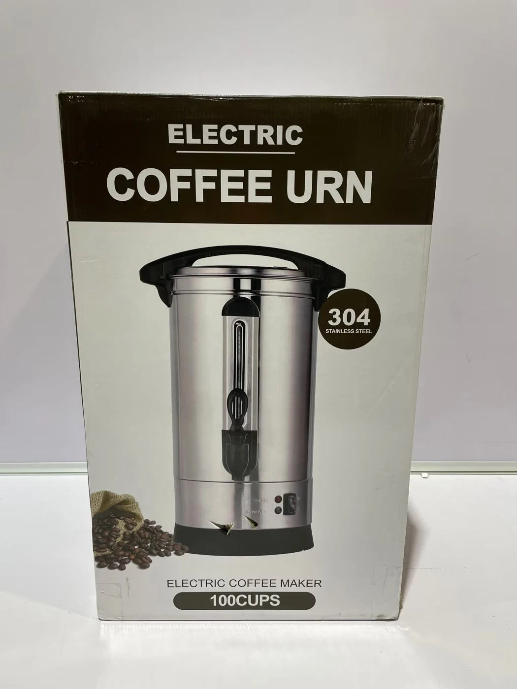 Selling an electric coffee urn that can brew up to 100 cups! It's made of 304 stainless steel and comes in the original box