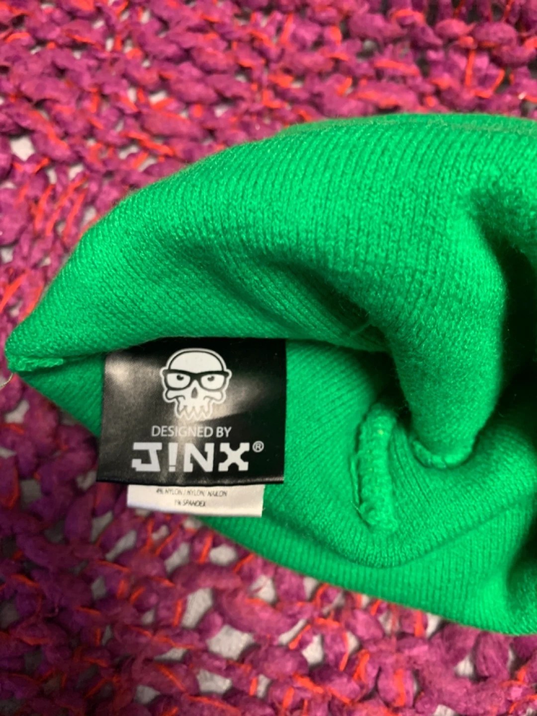 Keep cozy with this Minecraft Creeper beanie! It's a vibrant green and features the iconic Creeper face. The beanie is designed by JINX and made of a comfortable blend of nylon and spandex