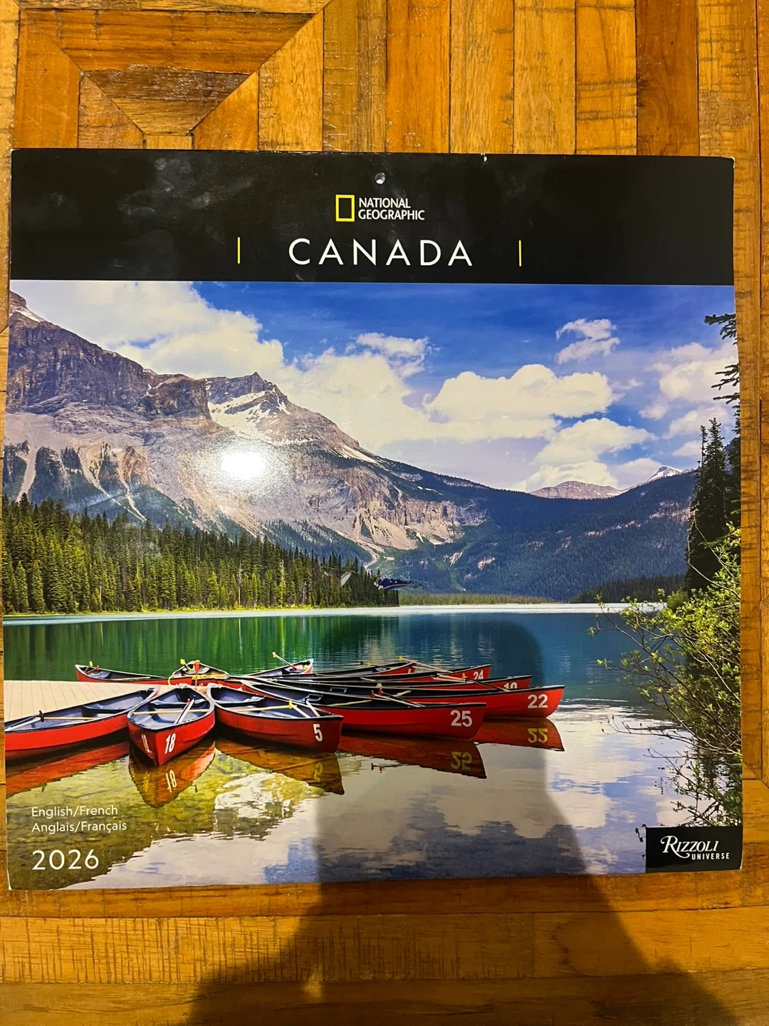 Selling a National Geographic 2026 calendar featuring Canada! It's brand new and still in its original plastic packaging. The calendar showcases beautiful landscapes from across Canada