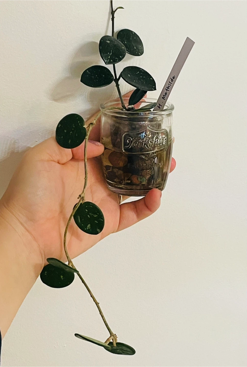 Selling a lovely Hoya Mathilde plant! It's currently potted in a cute Yorkshire jar. A perfect addition to any plant lover's collection or a great way to start one