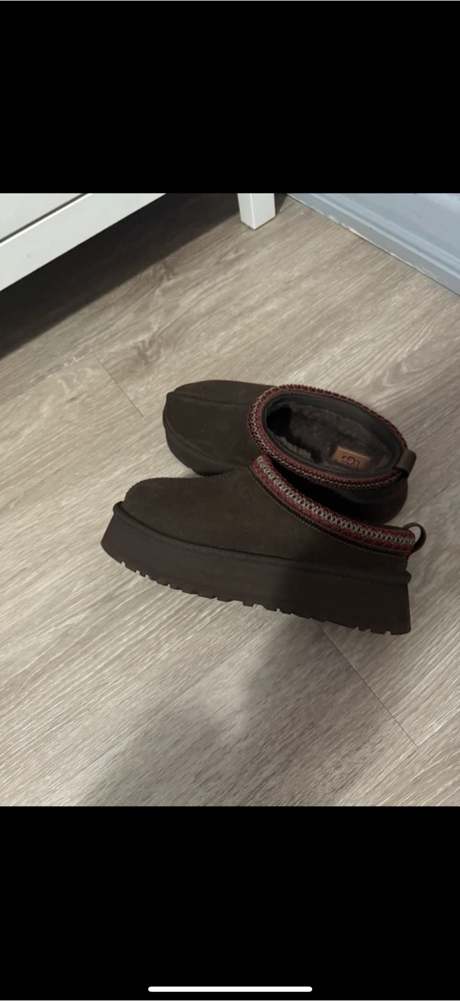 Selling a pair of UGG Tasman Luxe Mill Creek clogs in brown! They're super comfy and in great condition, perfect for wearing around the house or running errands