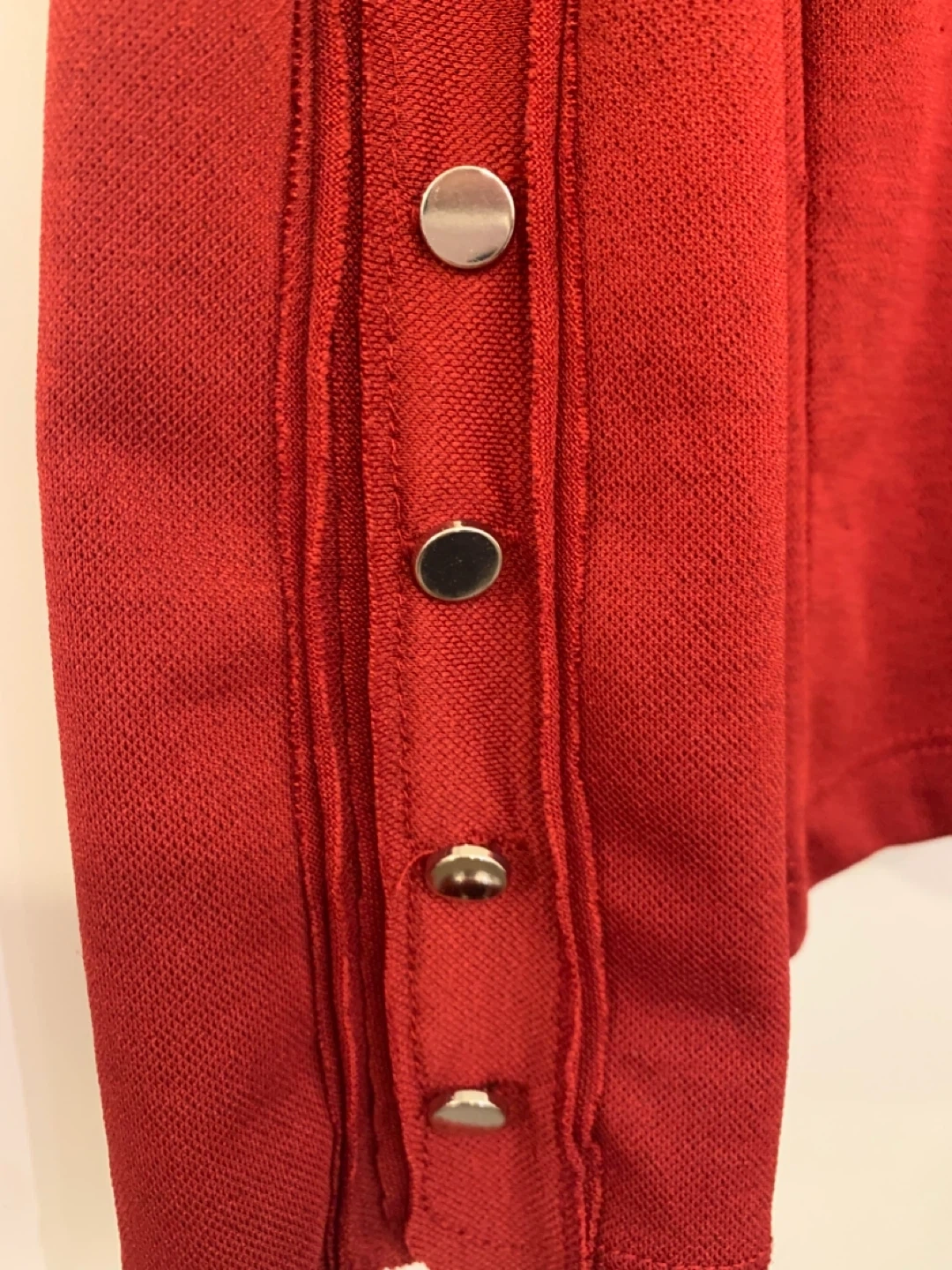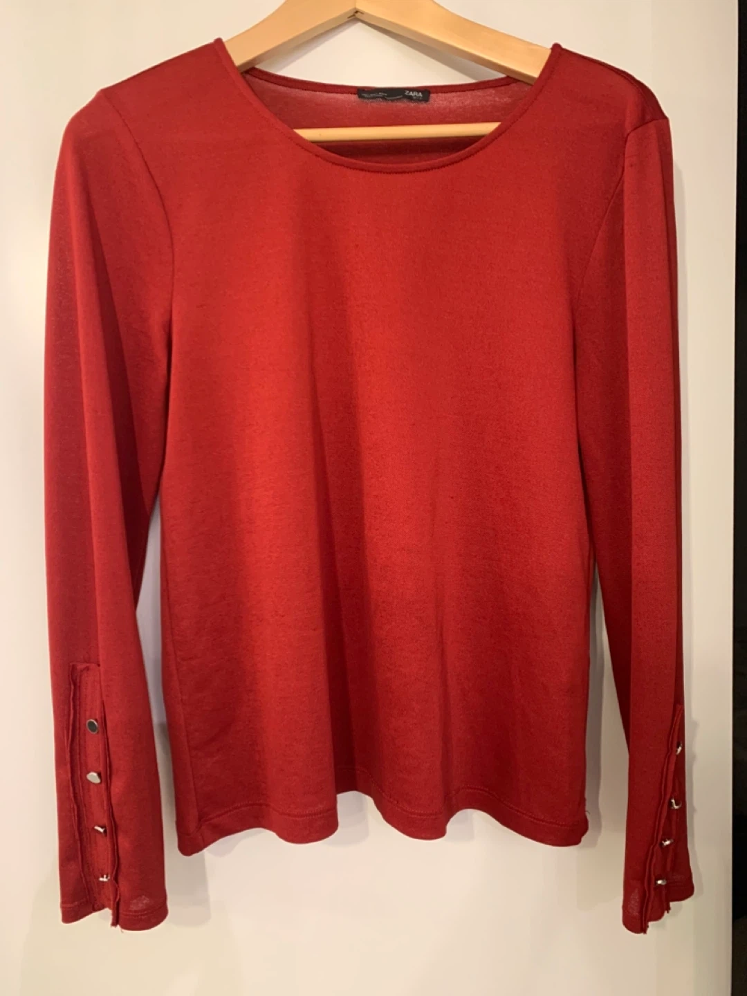 Here's a Zara red long sleeve top in size L. It has button details on the sleeves. It's in great condition!Port Coquitlam