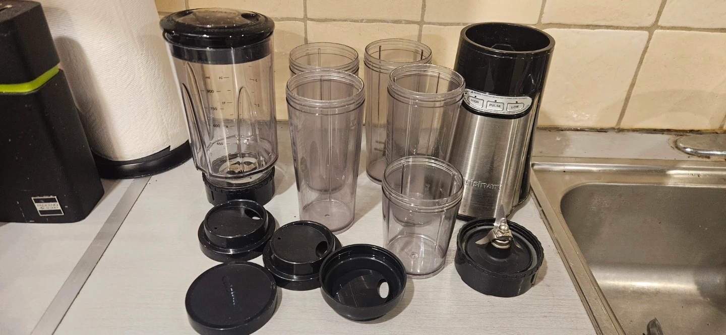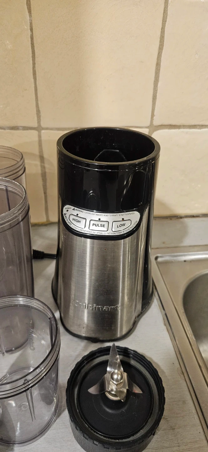 Selling a Cuisinart compact blender/food processor. It comes with five cups, lids, blender, and food processing attachment. Makes great smoothies! Cash only.