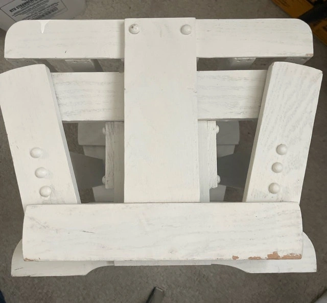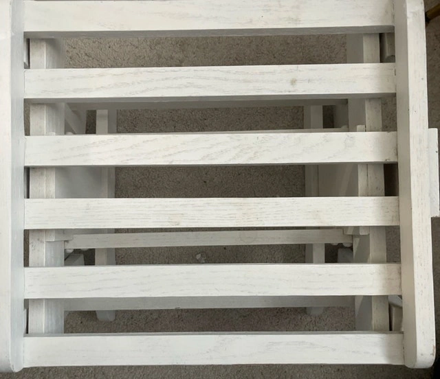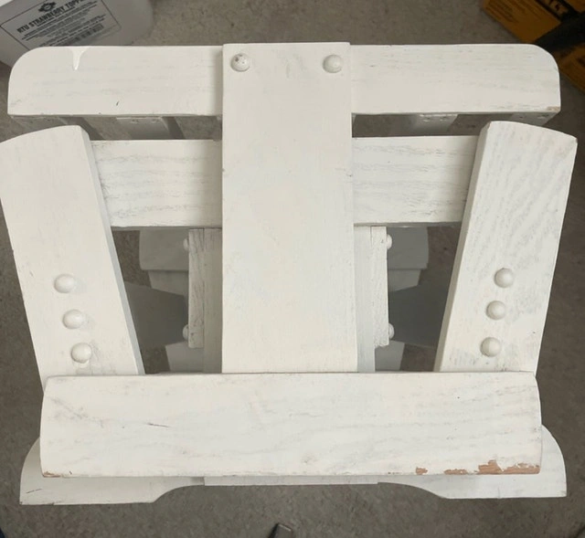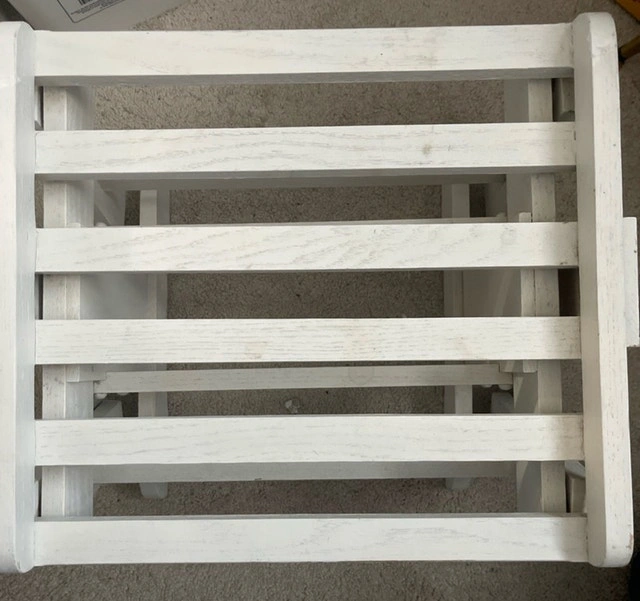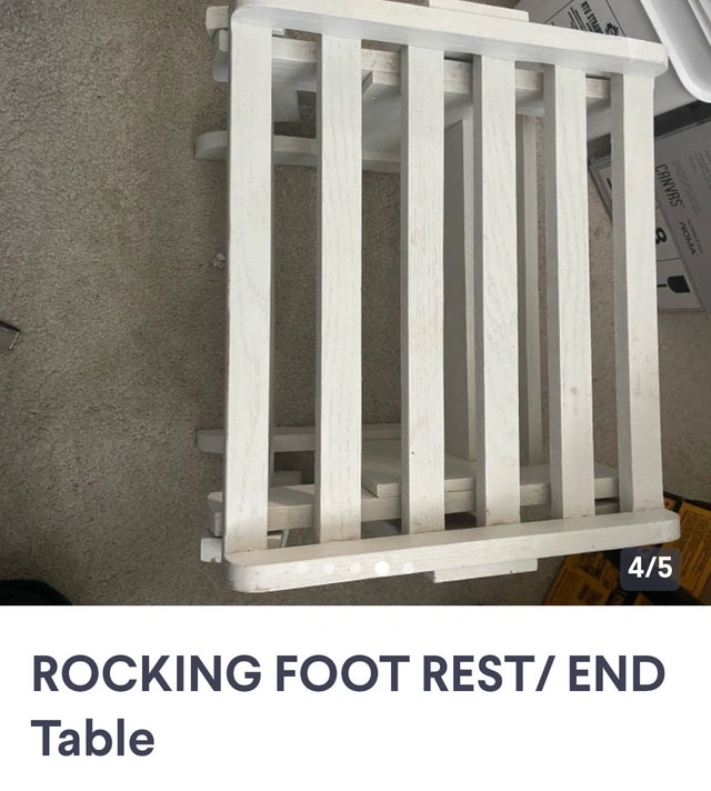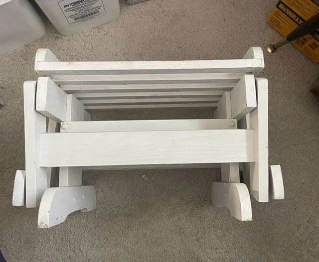 This charming white wooden FOOTREST is perfect for RELAXING with Your Wooden Rocker !!! OR!! Put a couple screws or zip ties and use it as an END TABLE for YOUR PADIO SET !!! I am hoping to find a new home for this piece. Pick up WINDSOR Park !