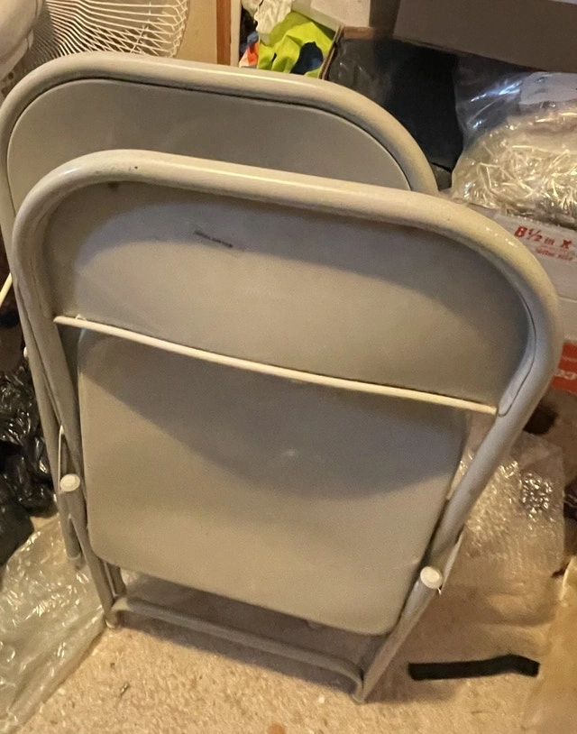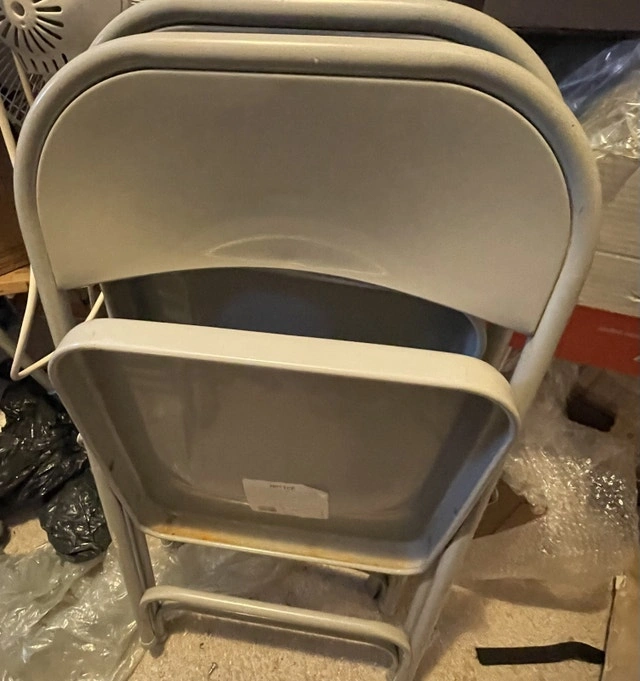I'm offering a set of metal folding chairs great for that large NEWYEARS PARTY !!! Two chairs for $25… I have four available …. Pickup Windsor Park …
