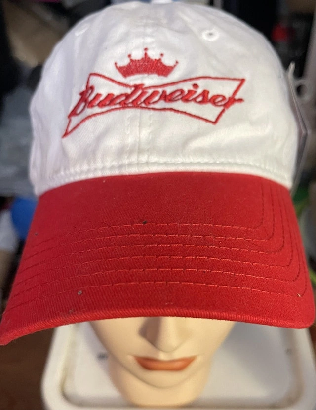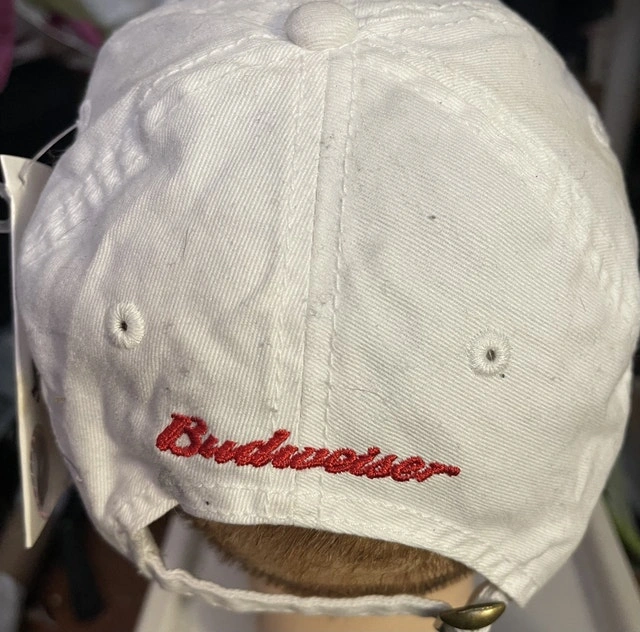 Add a pop of sudsy style to your wardrobe with this Budweiser hat! This ball cap is the perfect gift for memorabilia RaceCar enthusiasts/collectors or for sunny days or showing off your favourite beer. It's NEW ready for its new adventure.