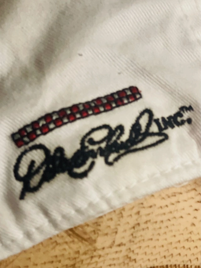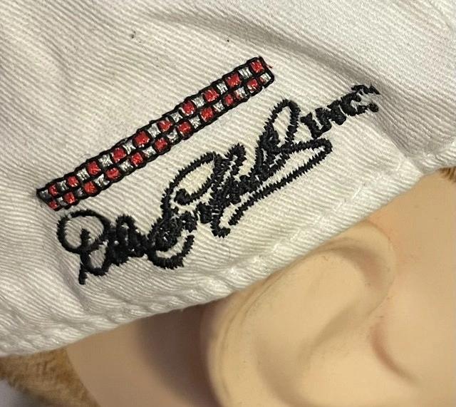 This Budweiser hat is a stylish accessory for any fan of the iconic brand, featuring a classic red and white design with embroidered logos, and signature of legendary race car driver Dale Enfield! This hat has an adjustable strap for a comfortable fit. It is in new condition with tags, ready to wear to your next game or casual outing.
