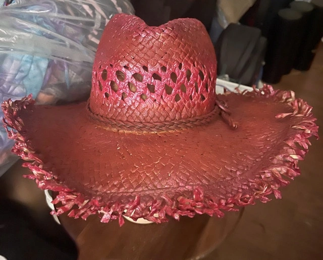 The hats are in New condition and are a beautiful purple or Pink colour. These hats would be perfect for a rodeo or a country themed party. Add a touch of cowgirl charm to your outfit with this stylish straw hat! I have a couple available, each has a unique flair, from a deep burgundy to a vibrant pink , all ready to turn heads at your next rodeo or country shindig! If the ad is still up, grab it, because it's available! If You want to come get them today ….tx 204 952-3163 take one or both (make me an offer ? ) Before someone else scoops them up !!!