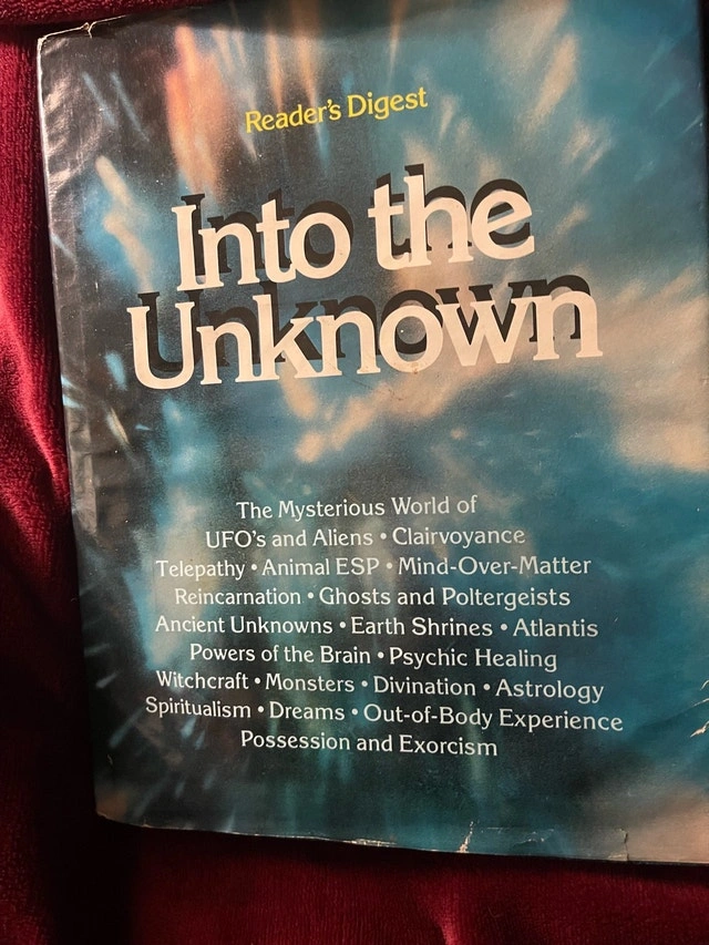 Explore the mysterious world with this Reader's Digest book, 'Into the Unknown,' diving into UFOs, clairvoyance, telepathy, and more. This used book is in good condition and is perfect for anyone fascinated by the paranormal and unexplained. It's like having a portal to other dimensions right on your bookshelf! Get ready to question everything you thought you knew! Additional details: * Reader's Digest * Topics include UFOs, clairvoyance, telepathy If the ad is up, the book is available!