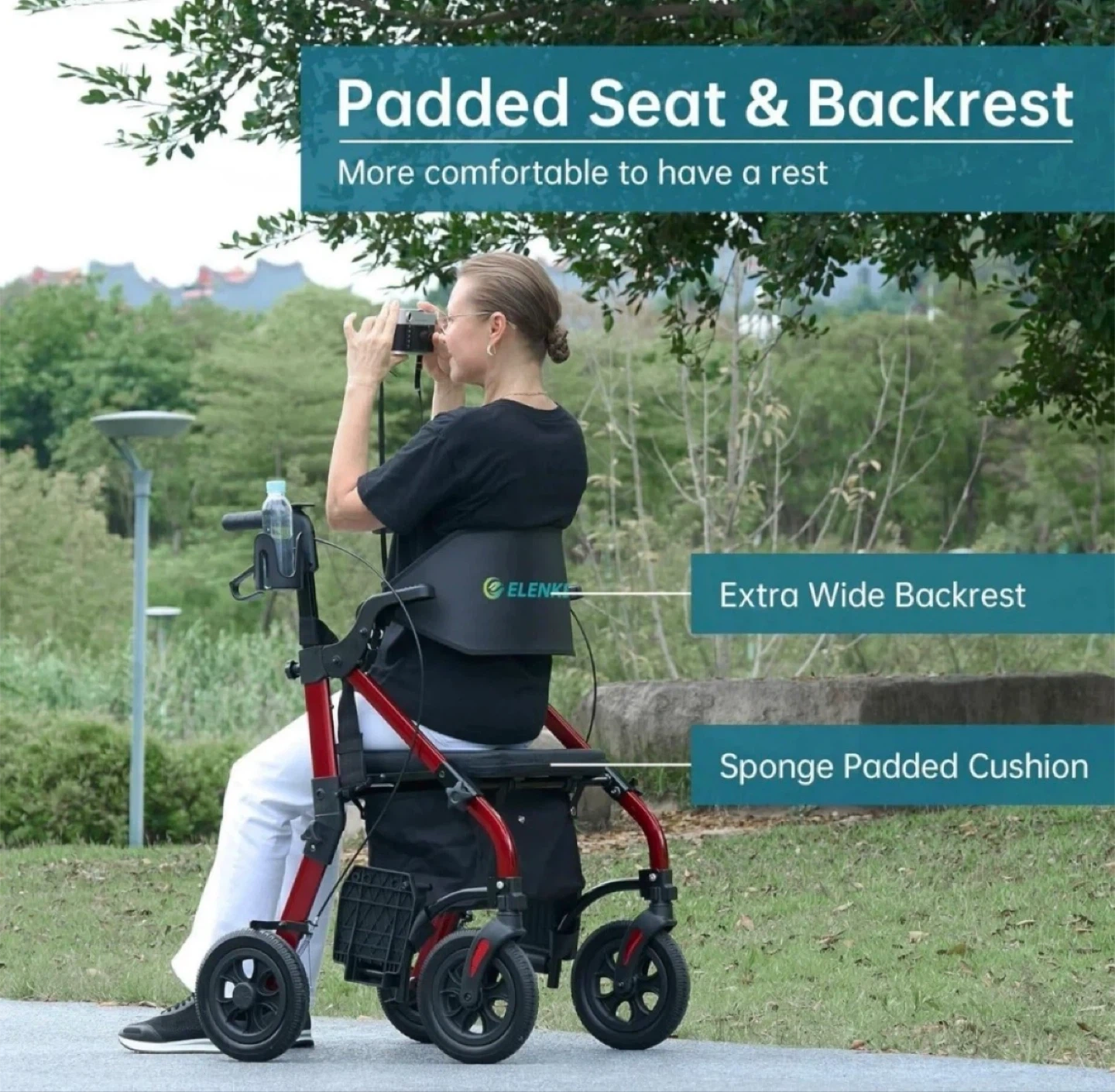 Elenker Rollator Walker with Seat & Backrest