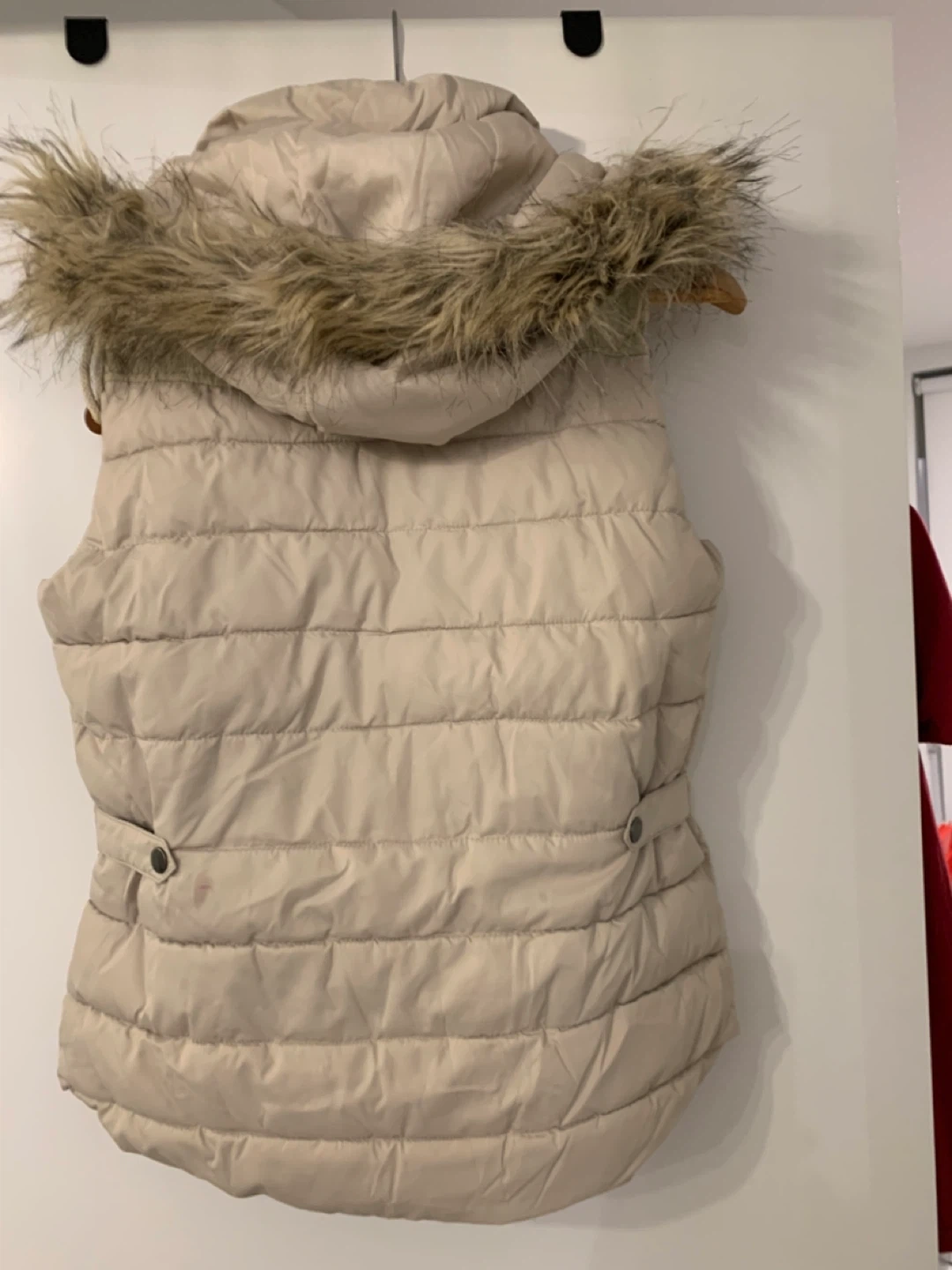 Selling a L.O.G.G. puffer vest in a neutral colour with a faux fur hood. It's a size US 6. Perfect for layering during the cooler months!