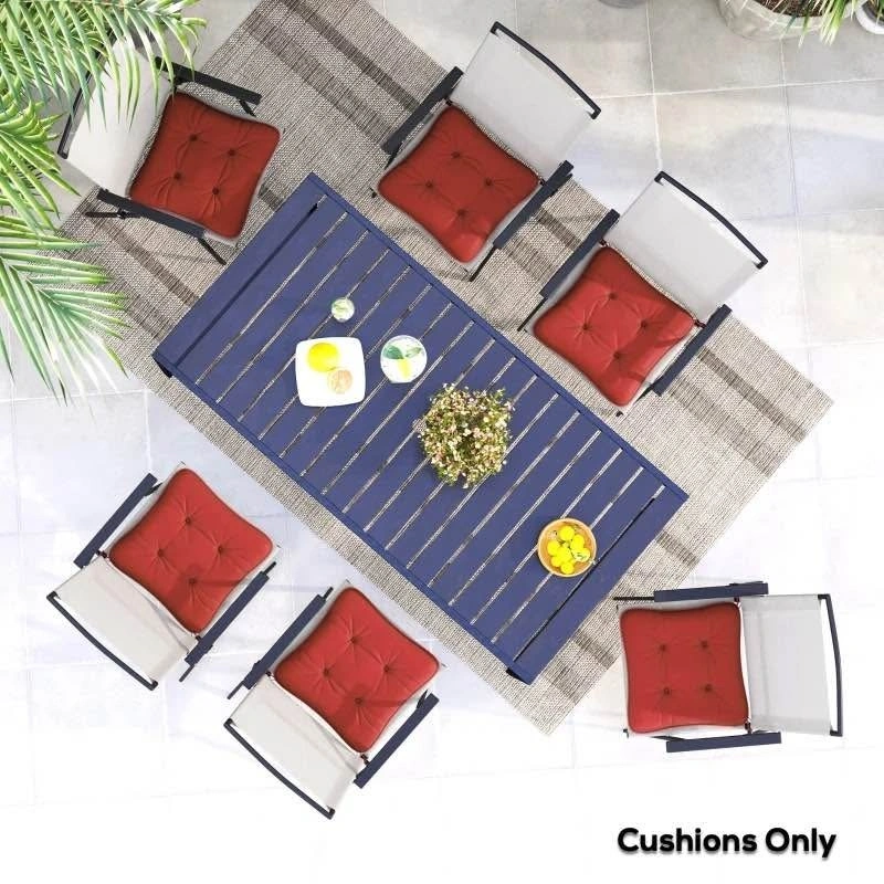 New in box, set of 6 patio chair cushions. For outdoor patio furniture, lounge chairs, and dining chair seating.