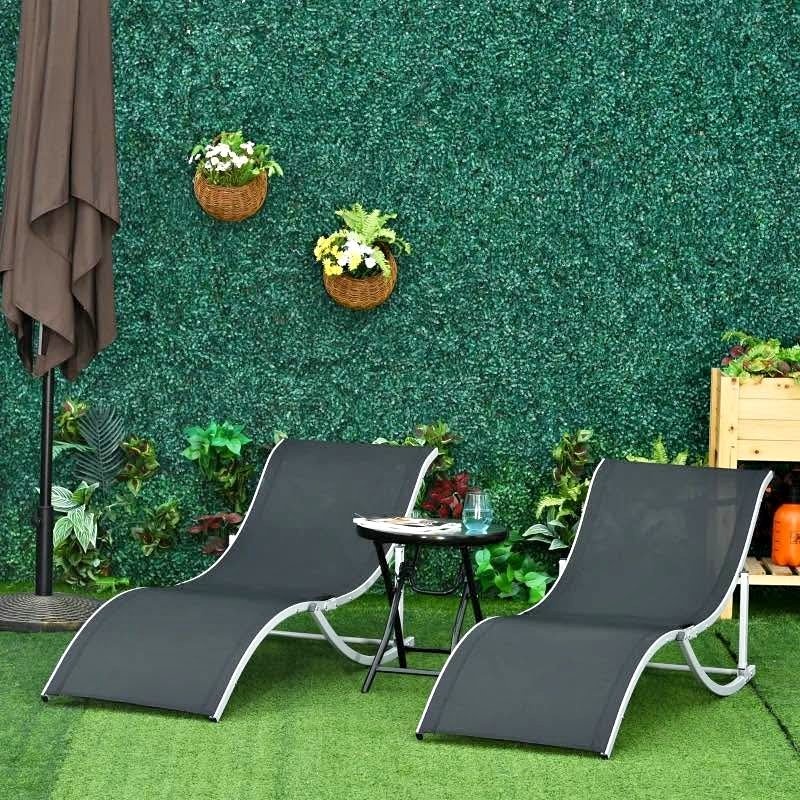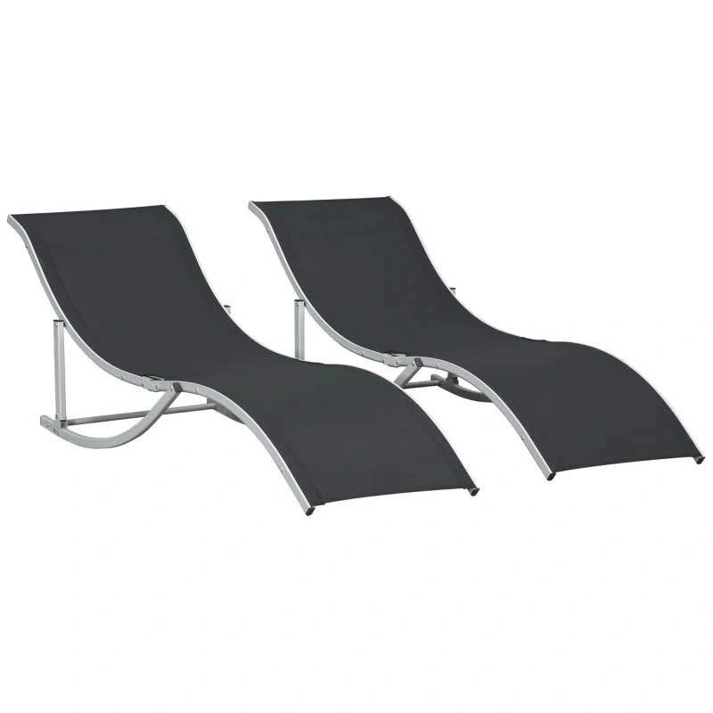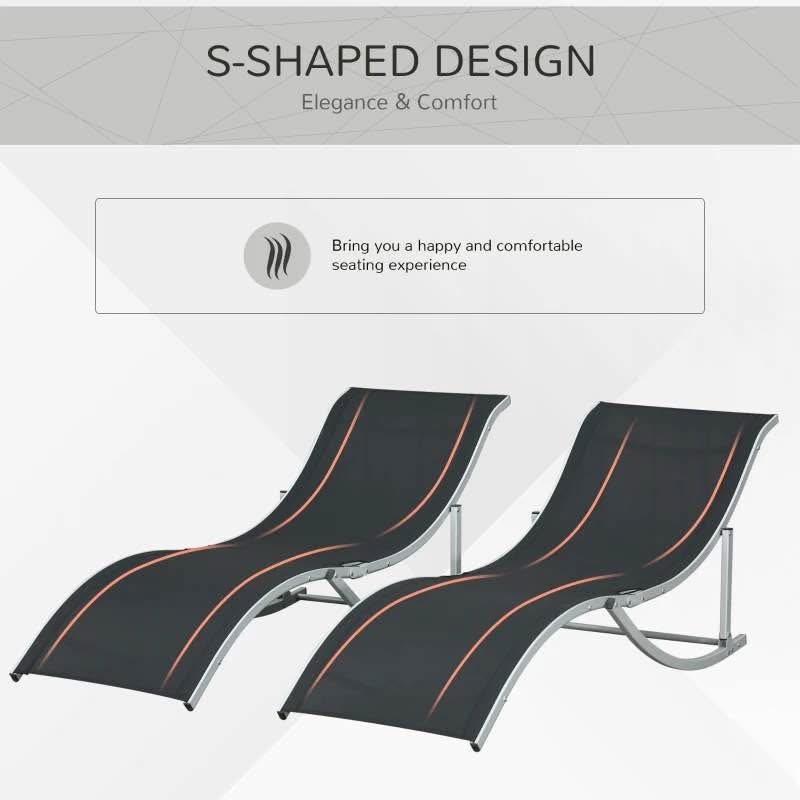 Pool Chaise Lounge Chairs Set of 2, S-shaped Foldable Outdoor Chaise Lounge Chair Reclining for Patio Beach Garden With 264lbs Weight Capacity, Black