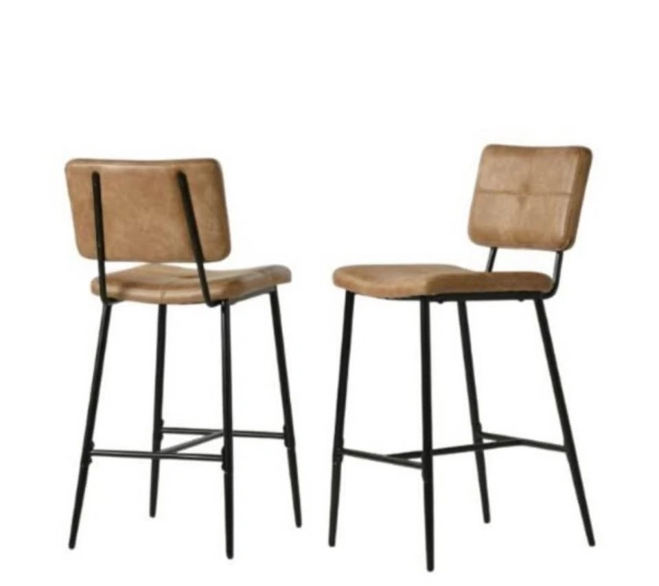 Set of 2 Modern Brown Faux Leather Counter Stools | #1325