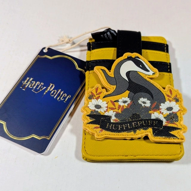 Made from high-quality vegan leather, it includes multiple card slots and a clear ID window to keep your essentials organized. Compact yet eye-catching, this officially licensed Loungefly piece is perfect for everyday use or adding a magical touch to your Harry Potter collection. Ideal for loyal Hufflepuffs and fans of all things Hogwarts!