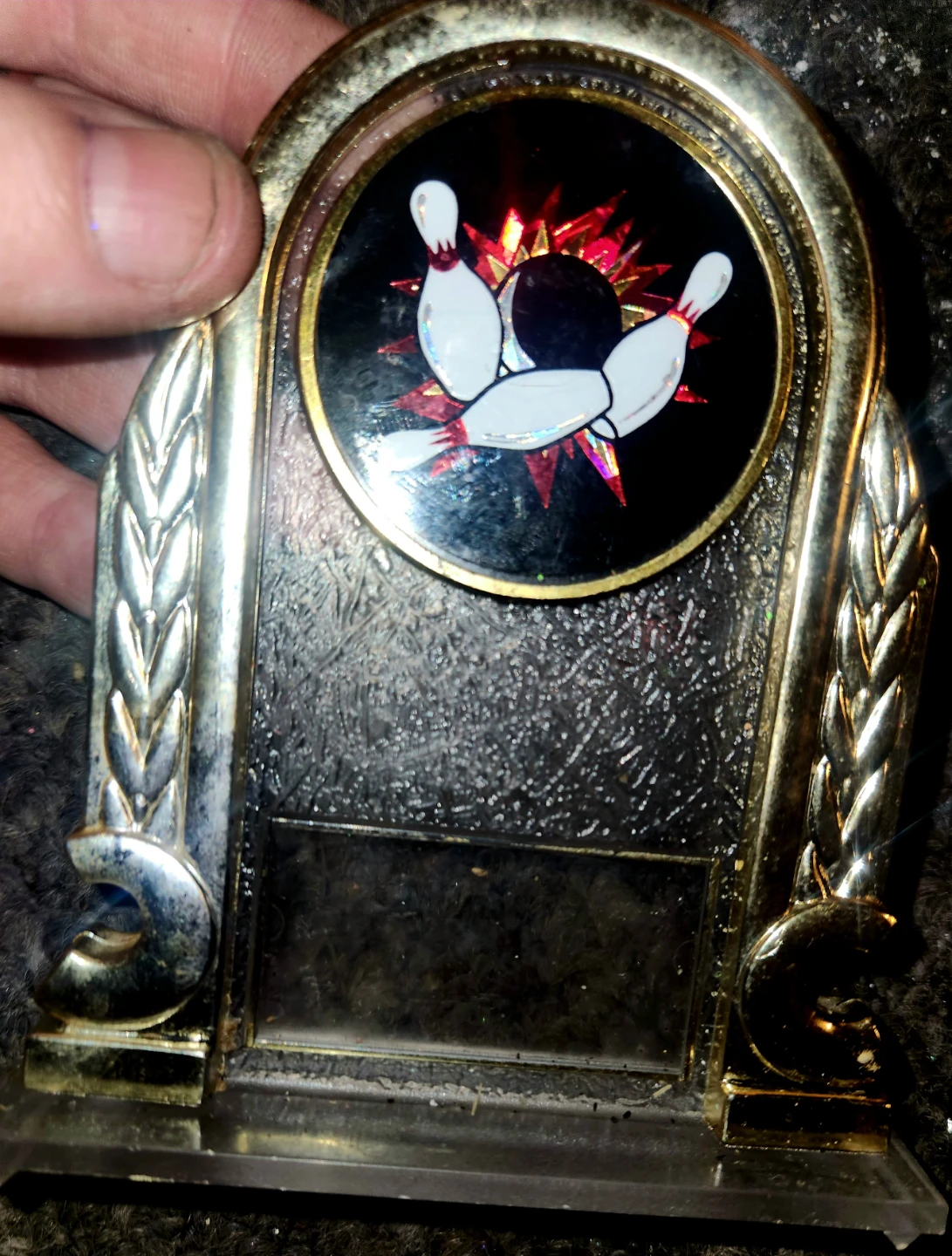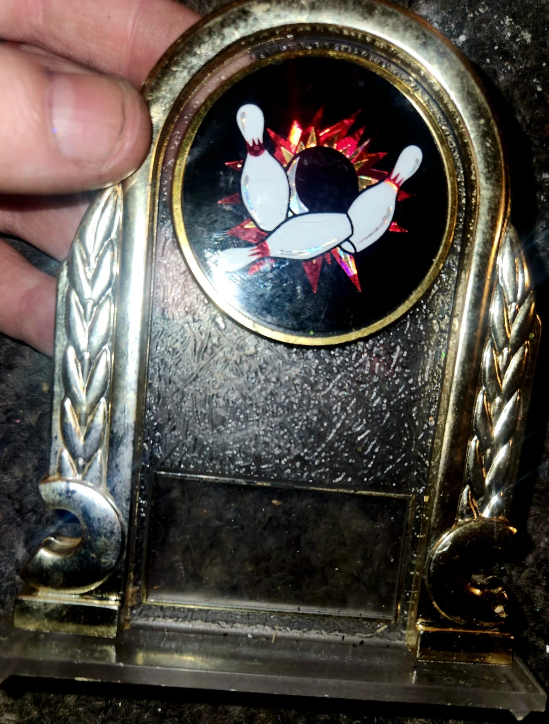 Selling a bowling trophy! It's in used condition and has a bowling ball and pins design on it. Great for any bowling enthusiast! PICKUP ONLY UNLESS NEAR INTERSECTION OF OXFORD AND GAMMAGE STREET.