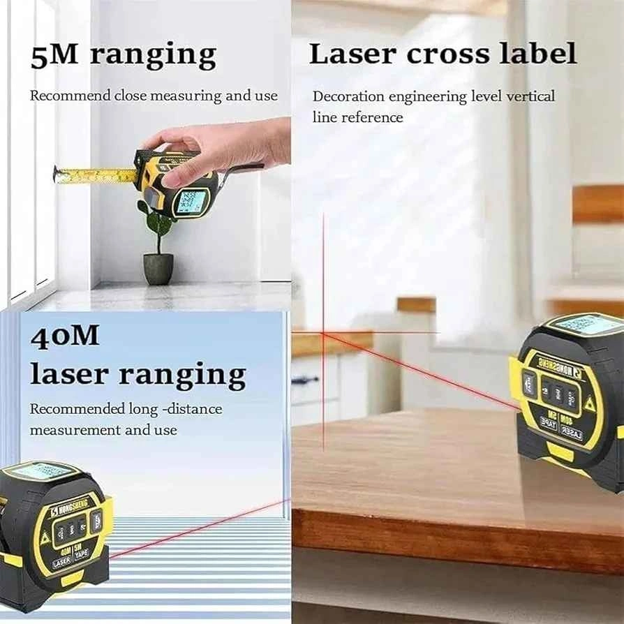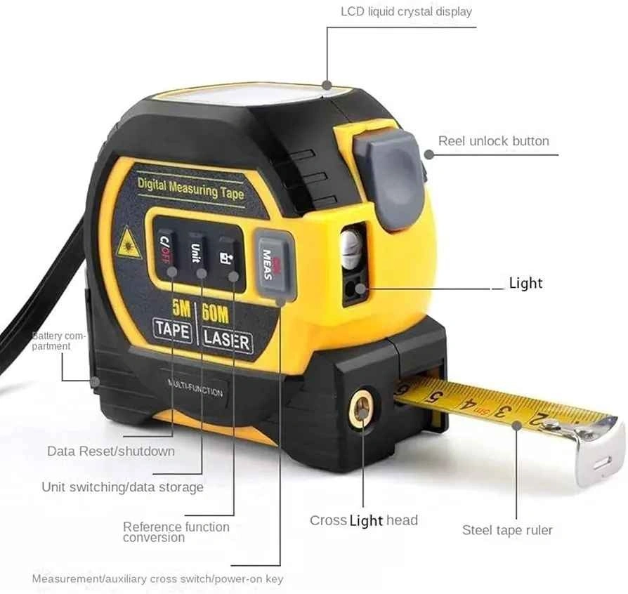 Experience the ultimate measuring solution with our Almighty Ruler, seamlessly integrating a laser distance meter, a 5-meter tape measure, and cross-marking capabilities. Effortlessly tackle challenging measuring tasks with just a click!