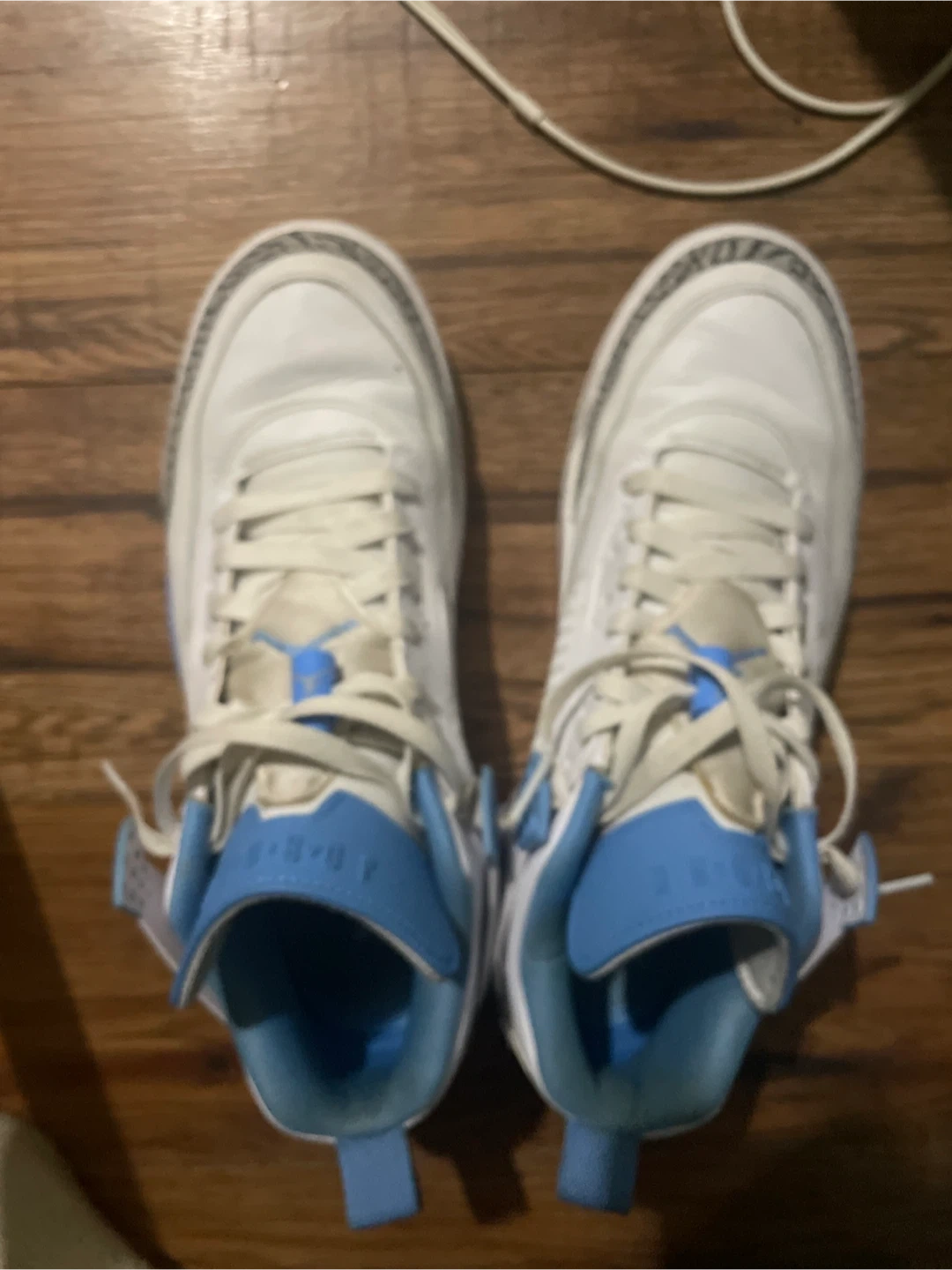 Selling a pair of Air Jordan 3 Retro in the UNC colourway. These sneakers are in good condition and ready for a new owner. They feature the classic elephant print detailing and Carolina blue accents.