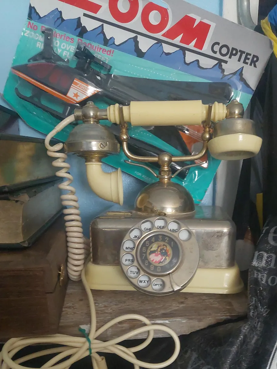 Selling a vintage rotary dial telephone. It has a classic design with a rotary dial and a retro aesthetic. Perfect for adding a touch of nostalgia to your home or office!