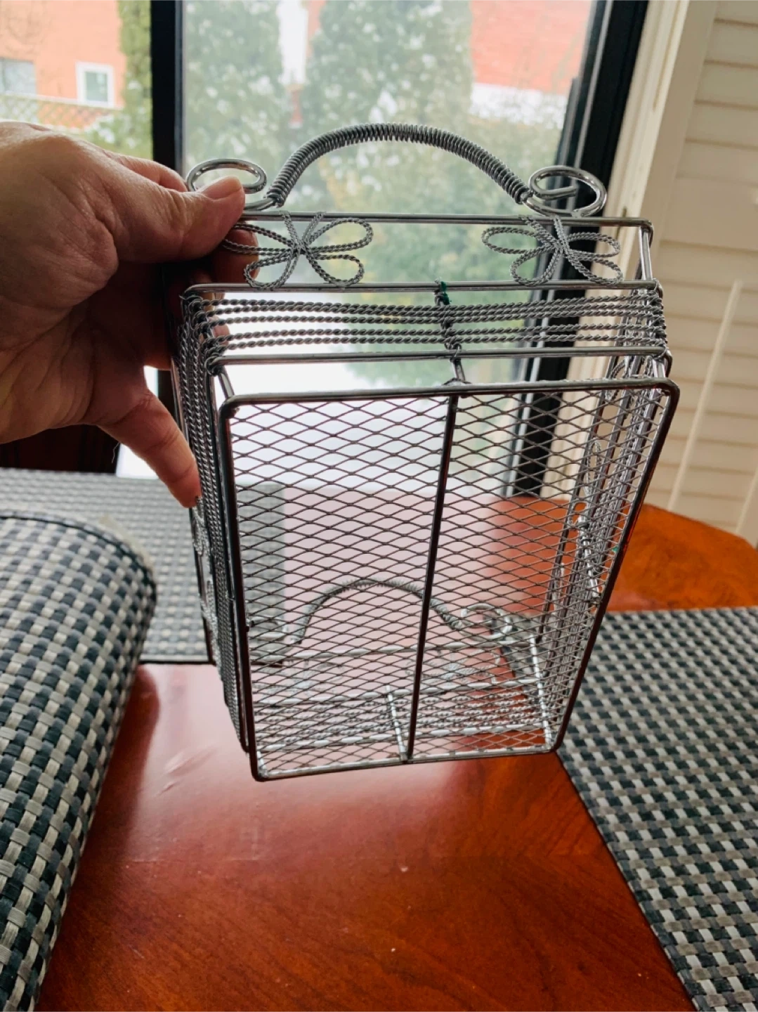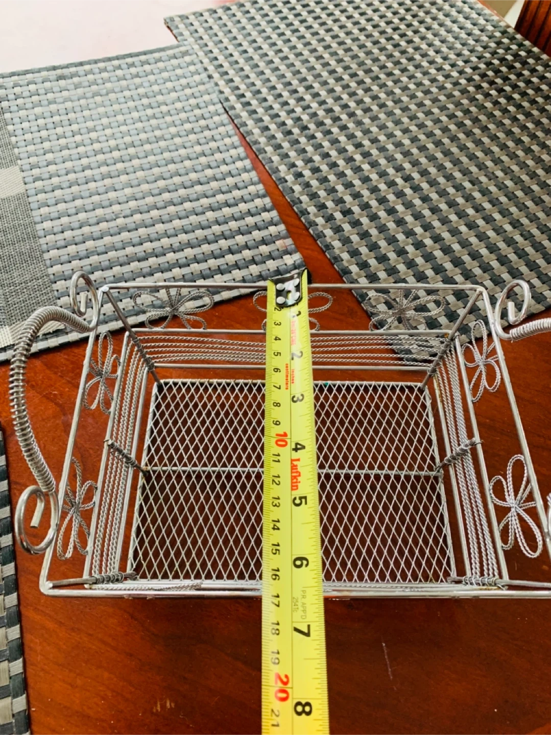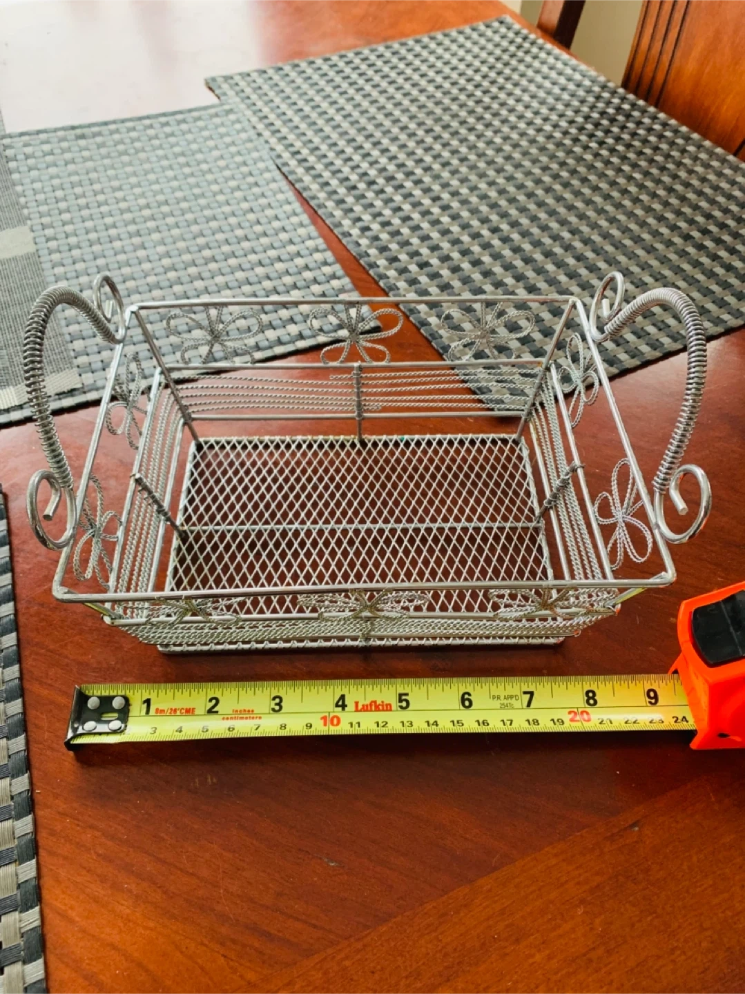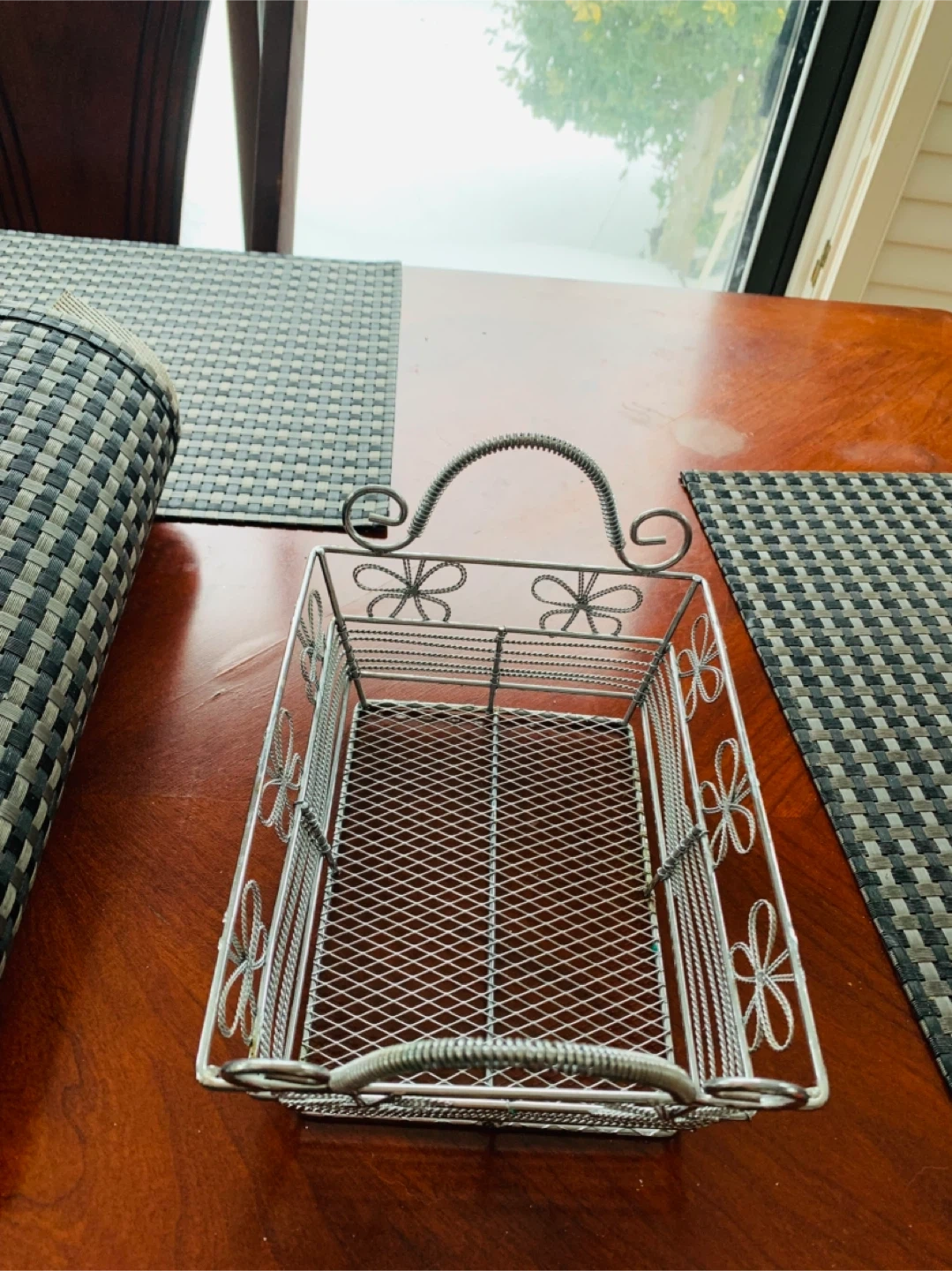 Decorative wired basket very sturdy and has a bit of weight to it. Can be used for many things…was using to keep make-up items. Selling for $5 CAD firm. Smoke Free Home.