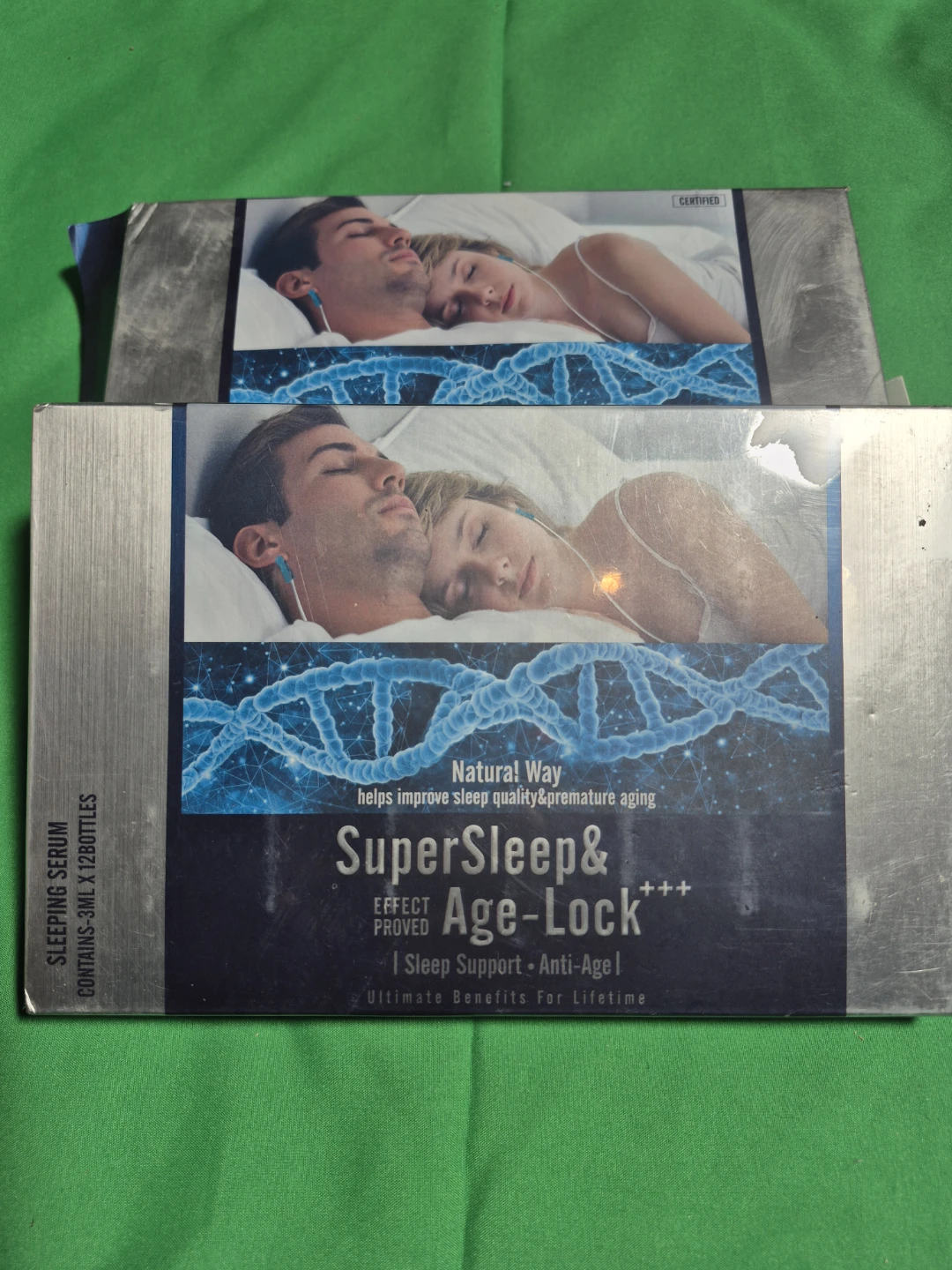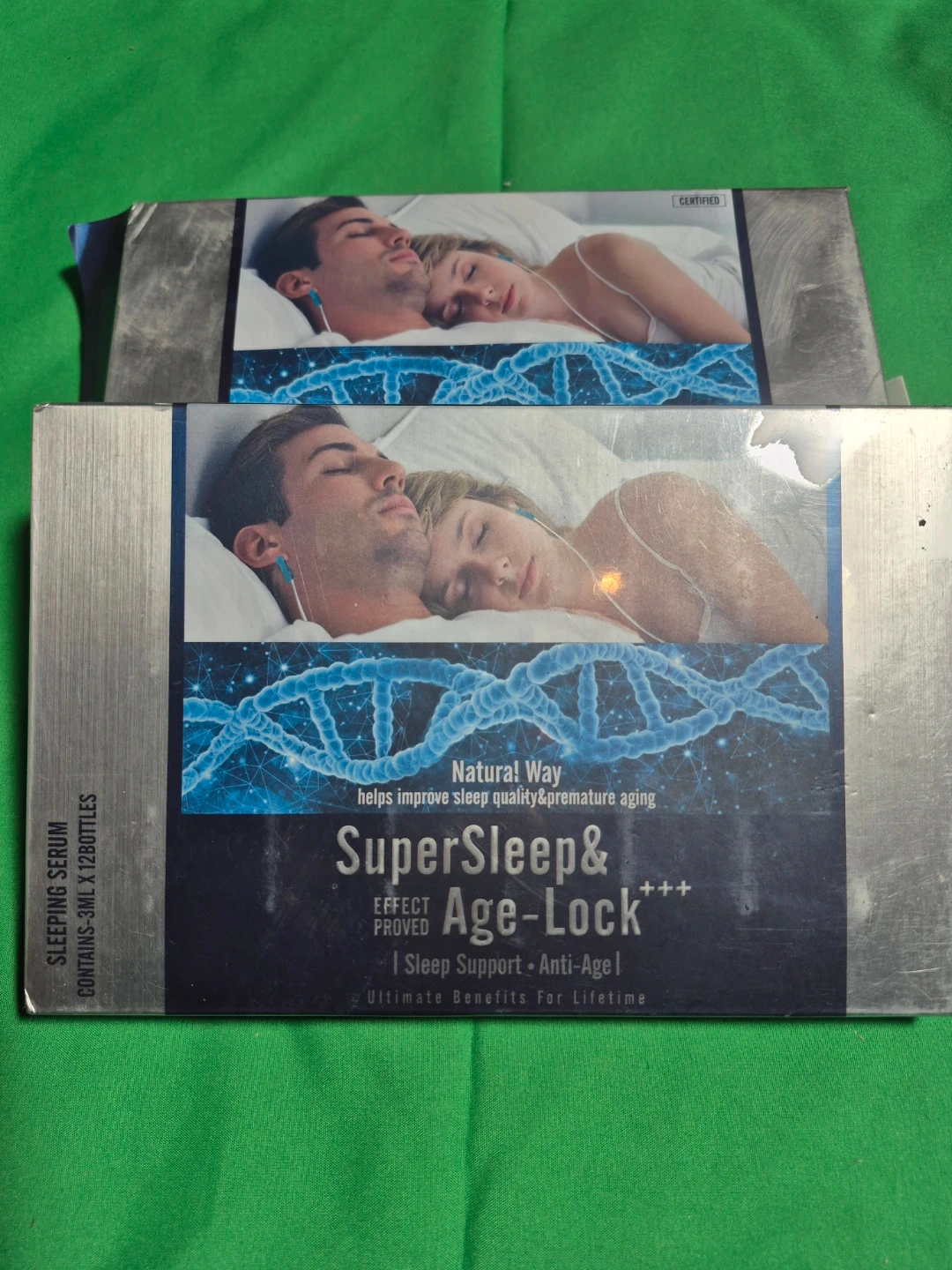 Selling a SuperSleep&Age-Lock sleeping serum. This serum promotes sleep quality and combats premature aging. It includes a sponge and ear clip for application. Contains 3mL x 128 bottles. Never been used
