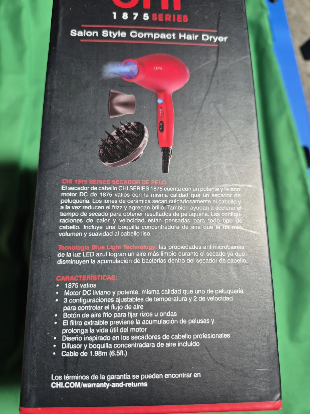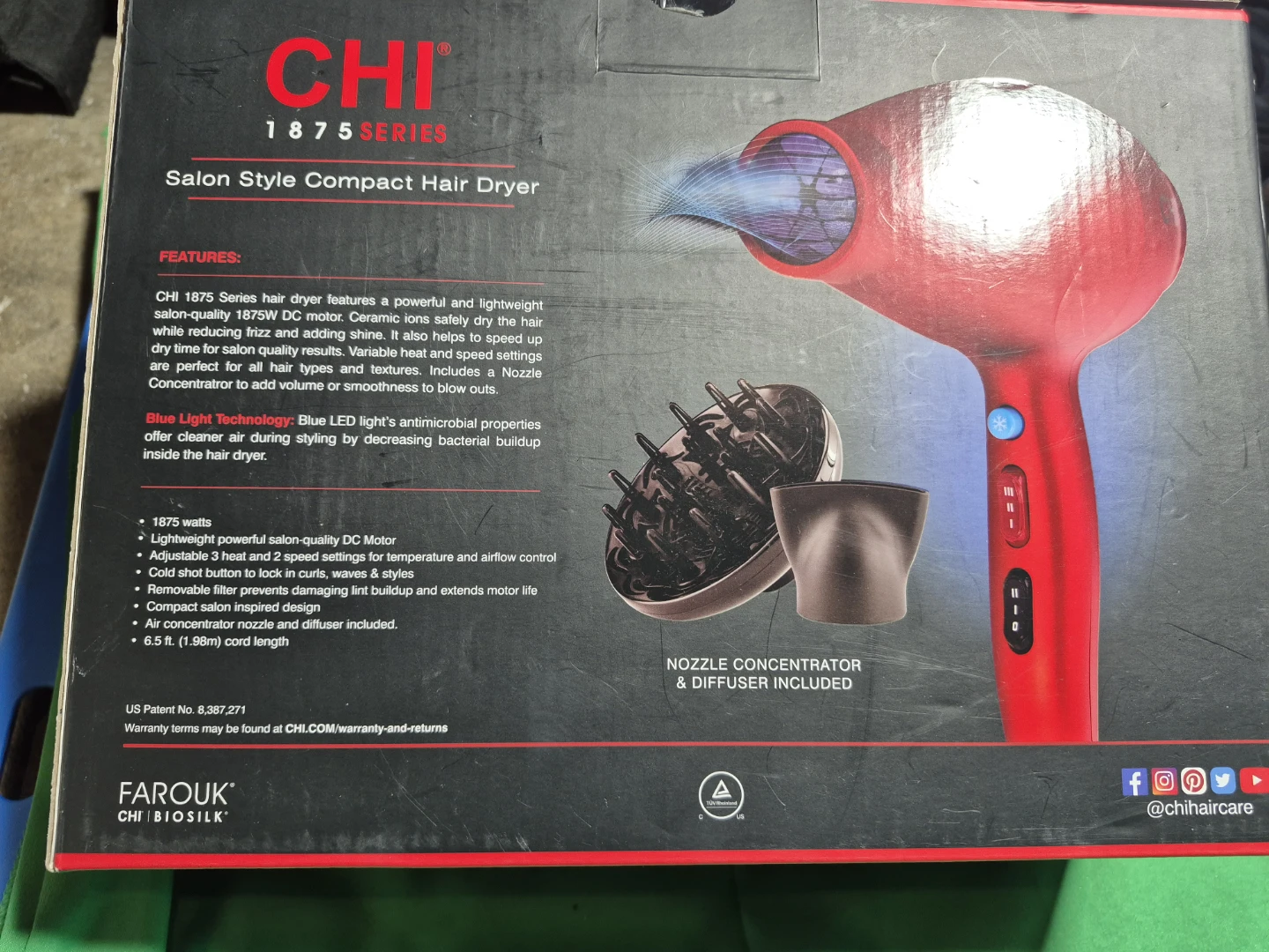 Selling a CHI 1875 Series Salon Style Compact Hair Dryer. It features a powerful and lightweight salon-quality 1875W DC motor that helps dry the hair while reducing frizz and adding shine.